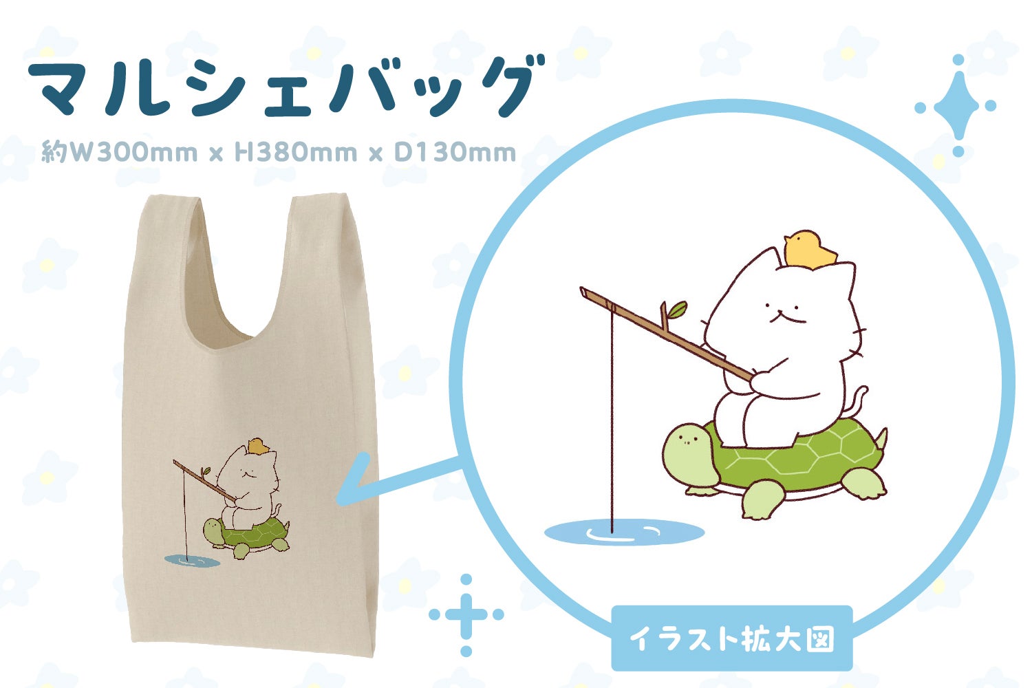 しろにゃんと一緒にお買い物できるマルシェバッグ!