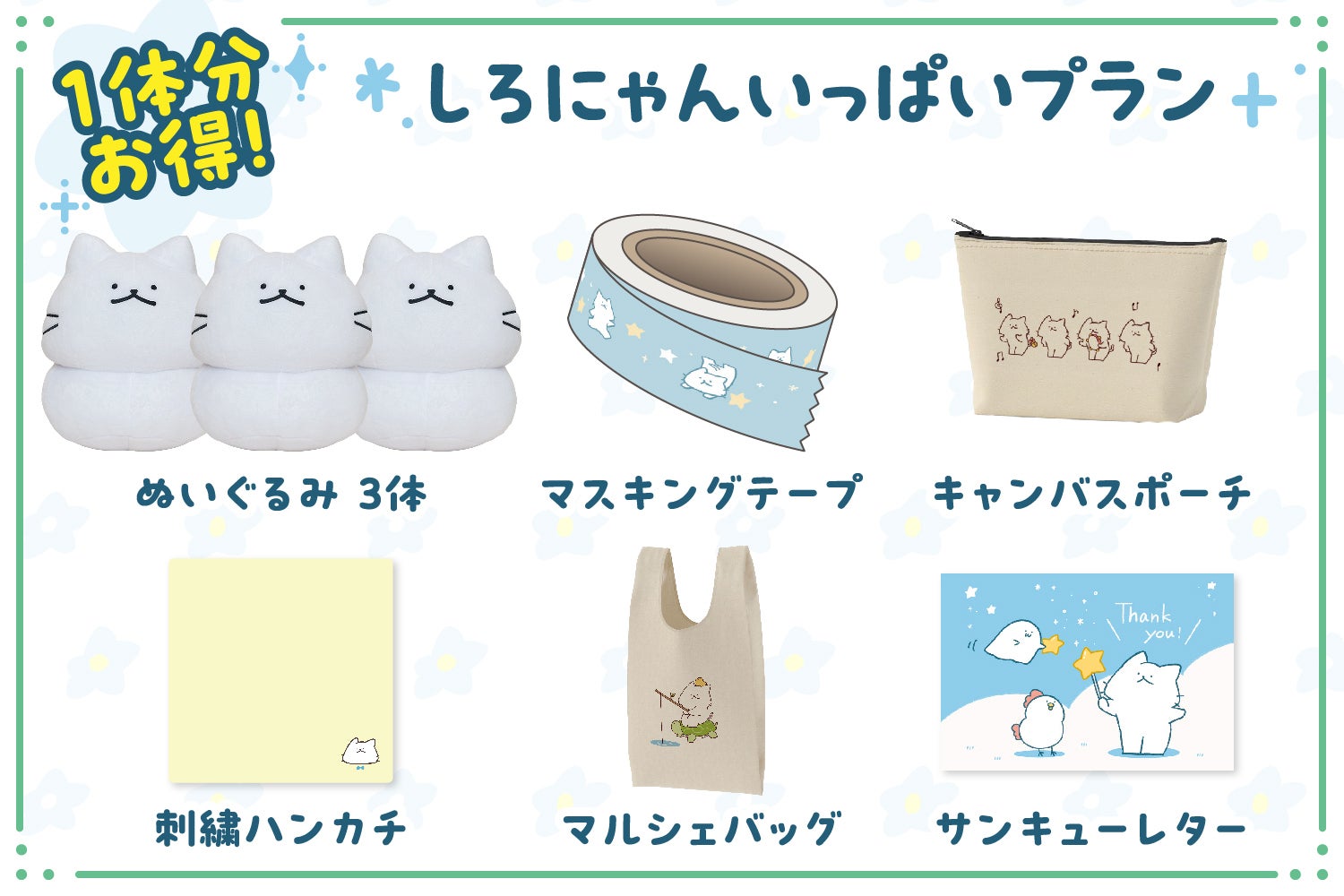 ぬいぐるみとグッズがゲットできるプランです!
