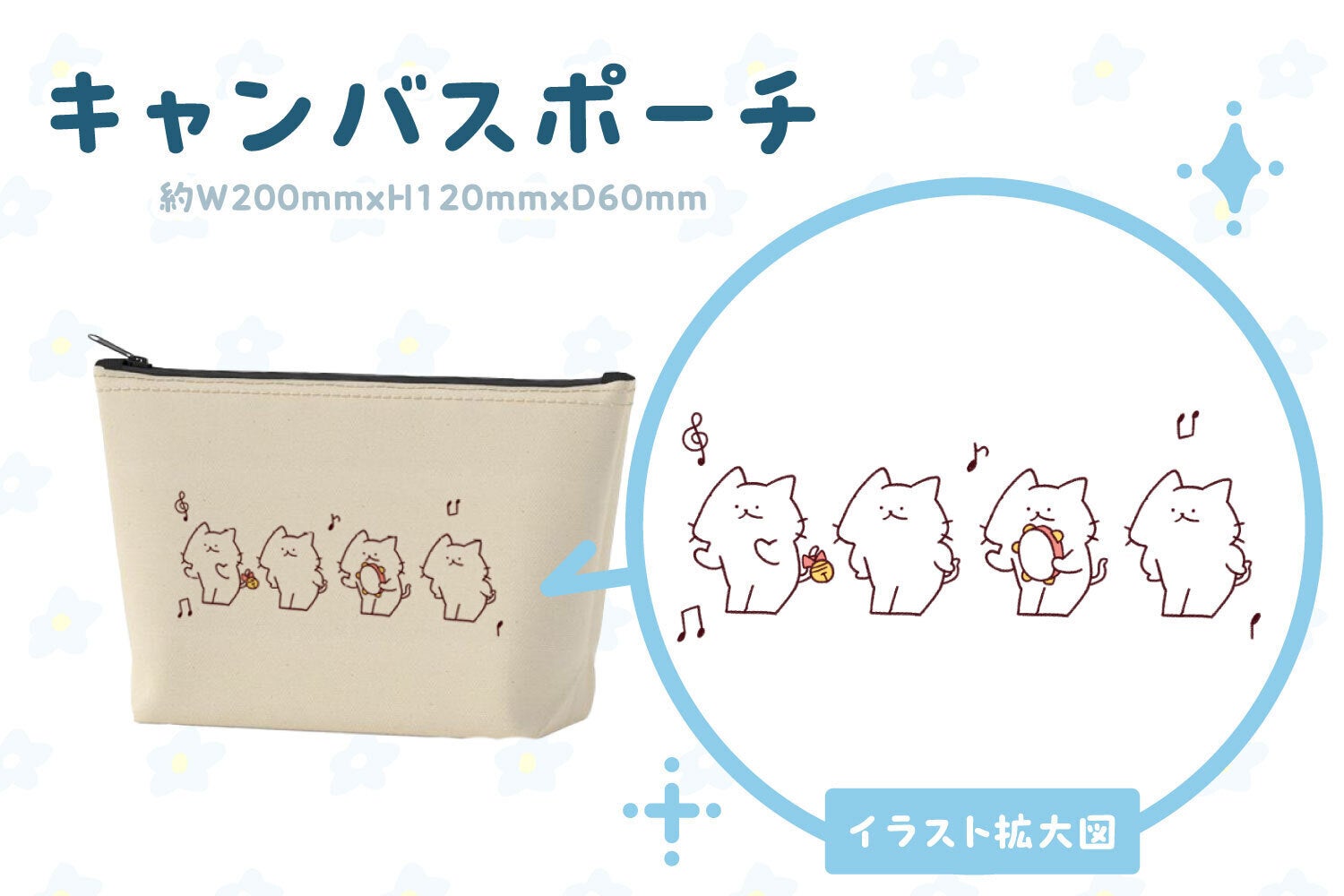 ノリノリなしろにゃんが可愛いキャンバスポーチ!大容量で使いやすい♪
