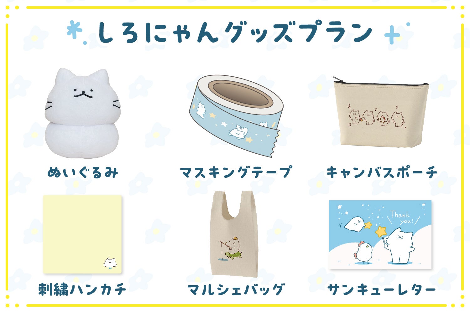 シンプルで使いやすいしろにゃんのハンカチ!