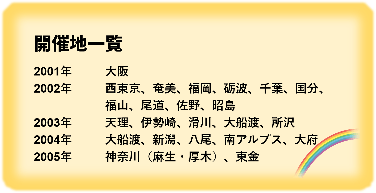 2001年秋に初演を迎え、以降2005年8月までのわずか4年間に全国24カ所の開催地でオーディションを行い、現地のキャストにより合計50公演を重ね、伝説の作品となりました。