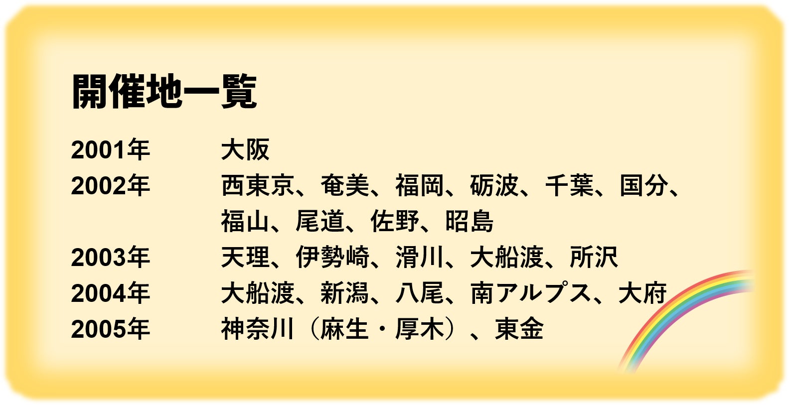 2001年秋に初演を迎え、以降2005年8月までのわずか4年間に全国24カ所の開催地でオーディションを行い、現地のキャストにより合計50公演を重ね、伝説の作品となりました。