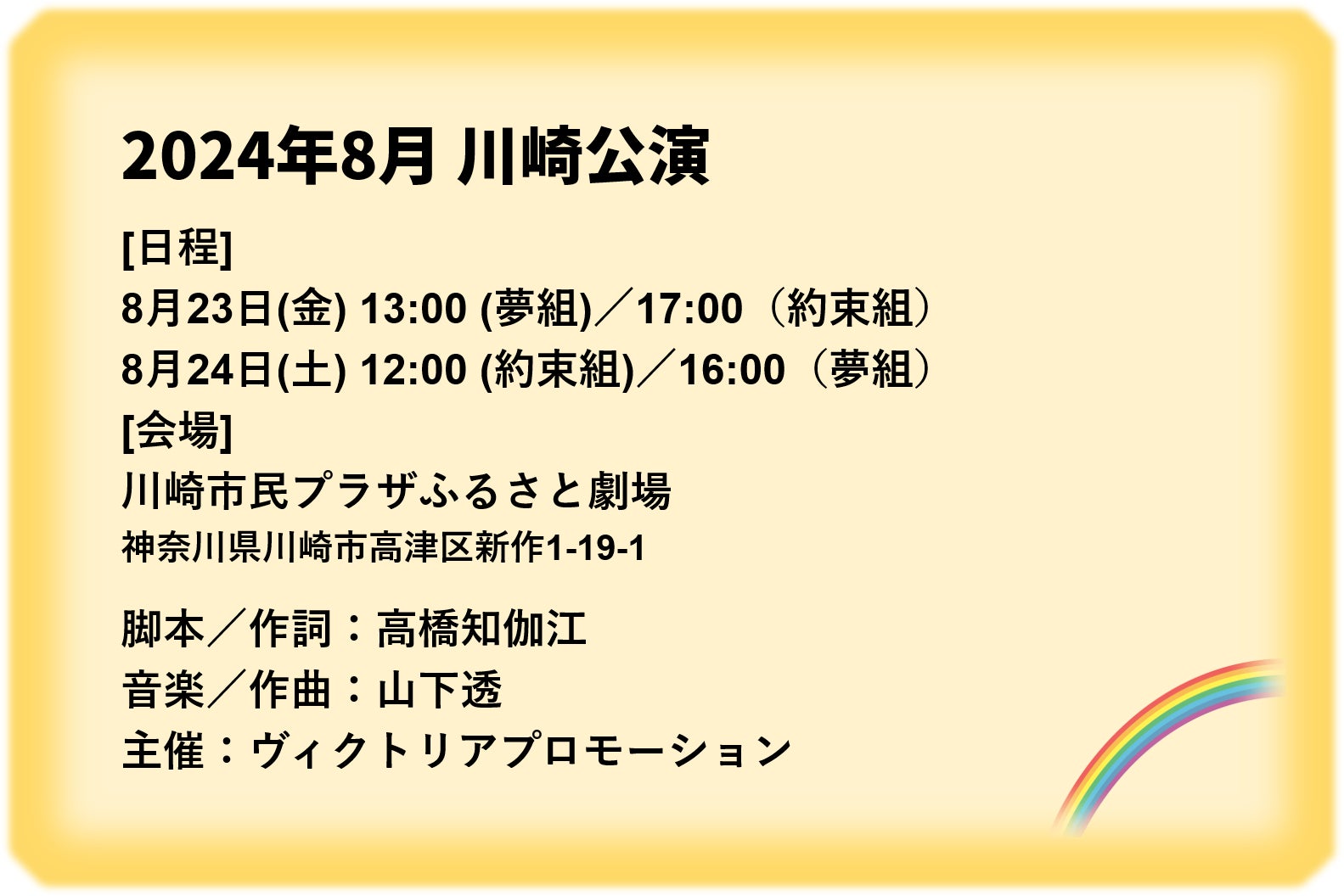 【脚本/作詞】高橋知伽江、 【音楽/作曲】山下透で生まれた、市民参加型ミュージカルです。