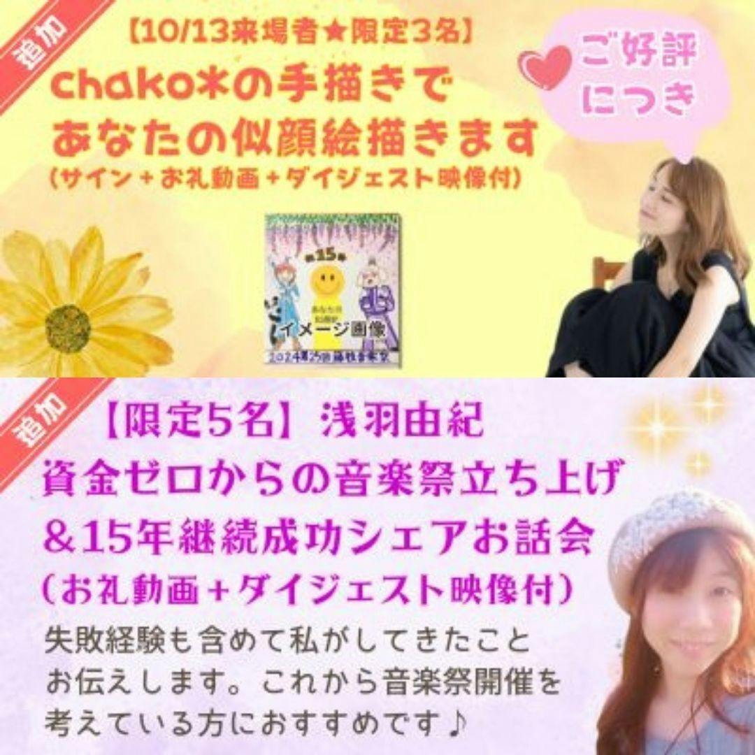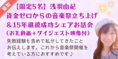 【 追加②<限定5名>★浅羽由紀 資金ゼロからの音楽祭立ち上げ&15年継続成功シェアお話会 2時間(お礼動画+ダイジェスト映像付)】※オンライン