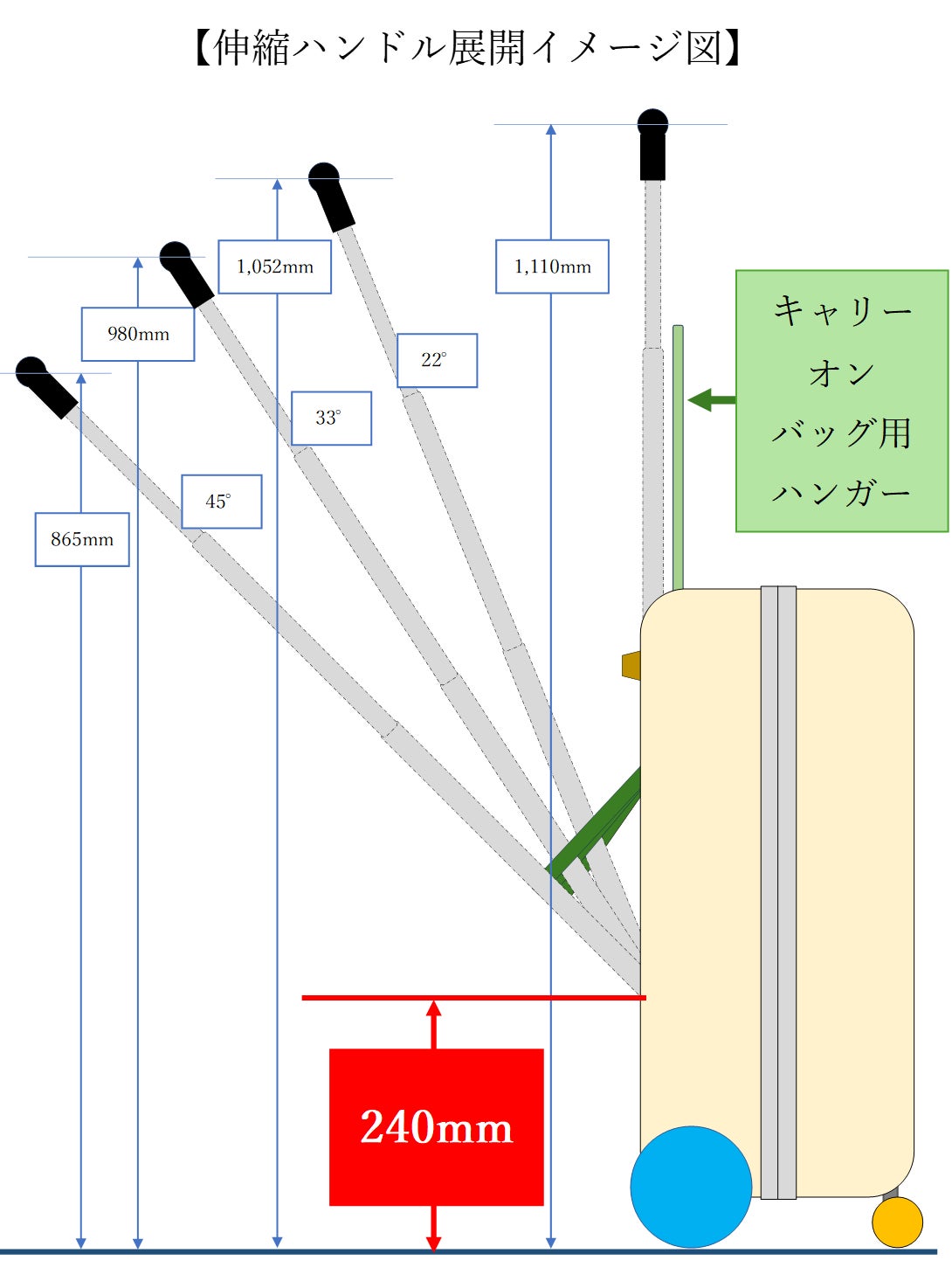 キャリ―ケースを身体の前で押し歩きできれば、便利だと思いませんか?