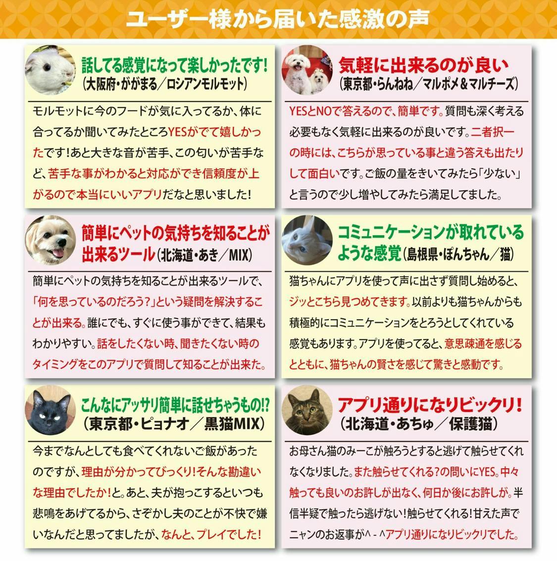 当アプリは、ペットや動物を愛する皆さまに使っていただきたいと思っています。