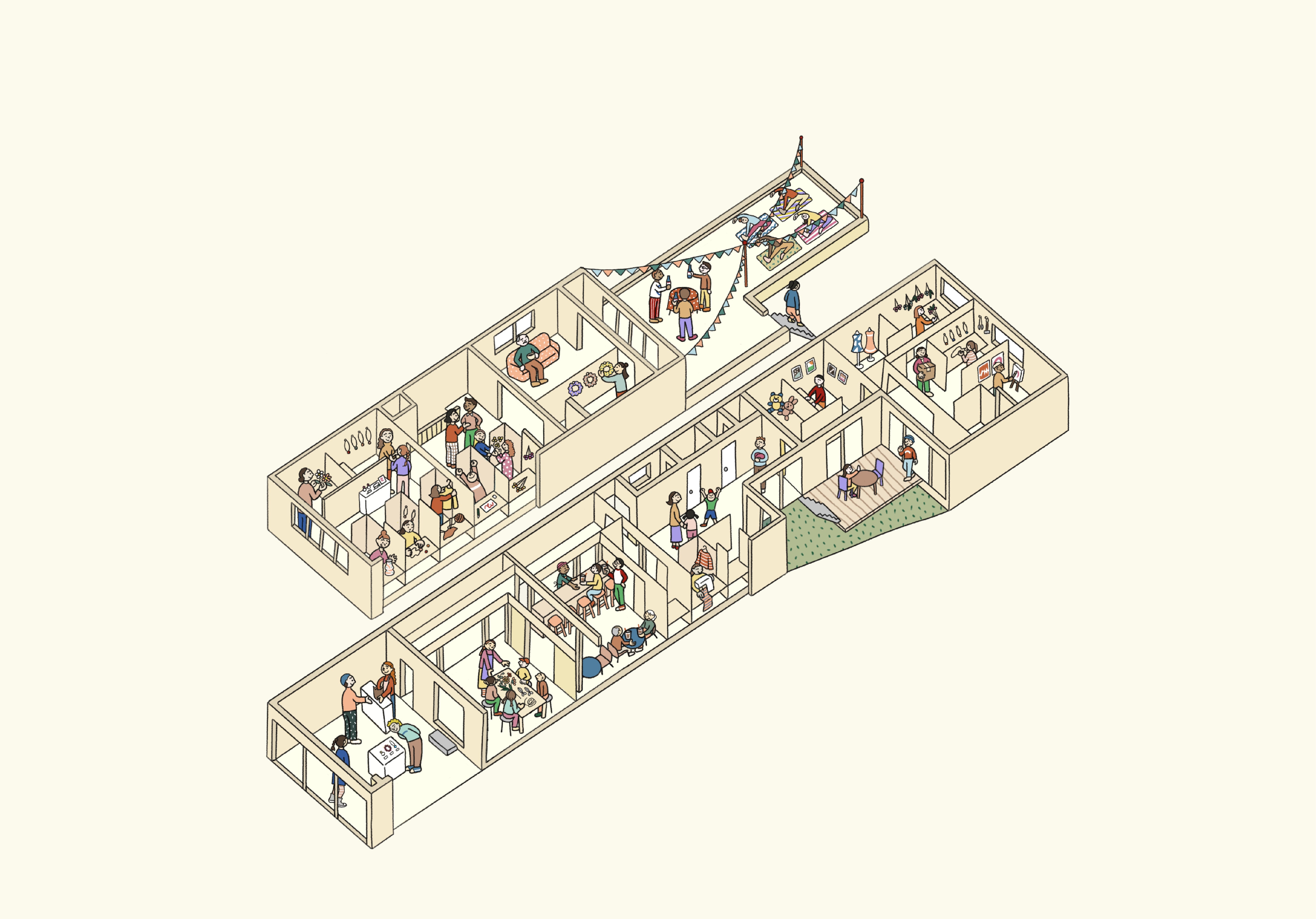 今回オカマチ荘のロゴ作成を&DAYS DESIGNの堀池さん(ホーリー)、そしてキービジュアルをイラストレーターのYOUCAさんにお願いしました!想いを汲み取ってくださり、とても暖かくて柔らかい雰囲気の素敵なデザインにしてくださりました。