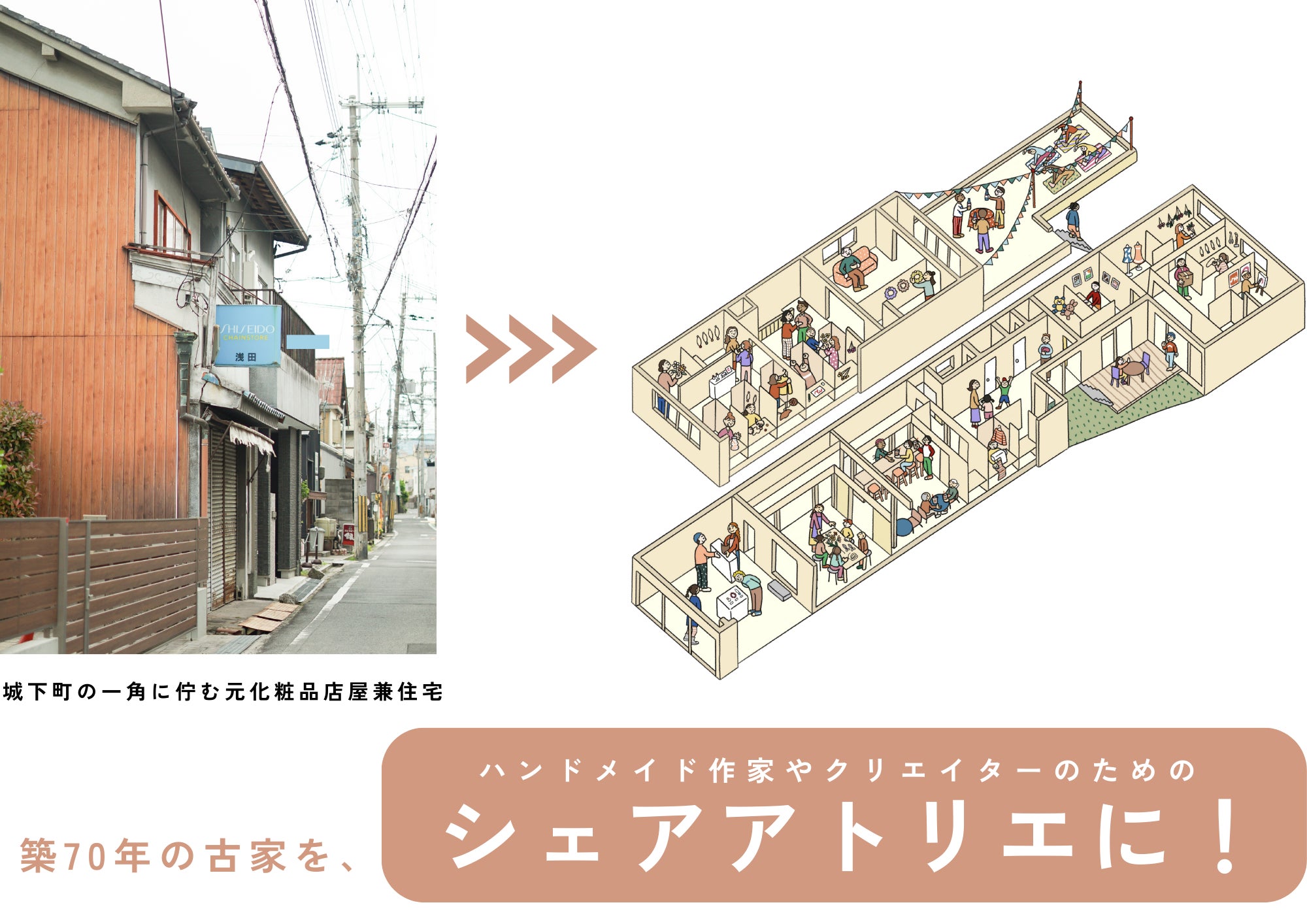 今回は手作り作家やクリエイターの方が集まり交わりながらものづくりができるシェアアトリエをつくるプロジェクトでクラウドファンディングに挑戦することにしました。