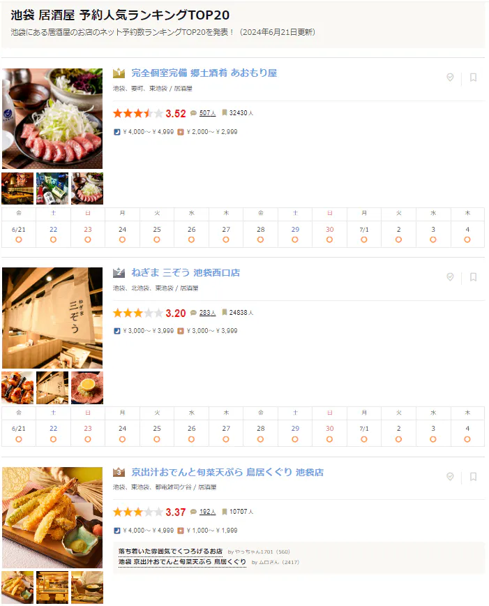お陰さまで池袋エリア内居酒屋ジャンル予約人気ランキングTOP3に入ることができました!