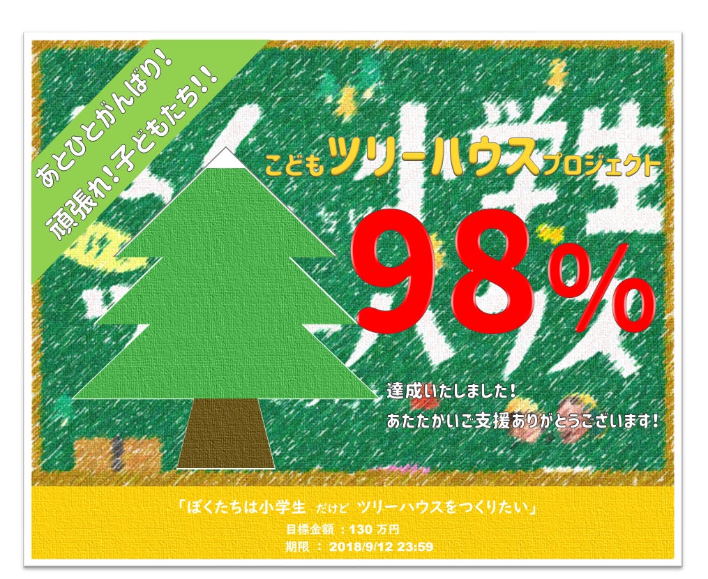 皆様のおかげで今日、目標額の98%に到達しました。
