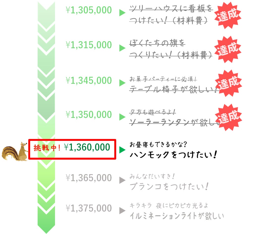 あと3,000円でツリーハウスの下にハンモックを取り付けることができます。