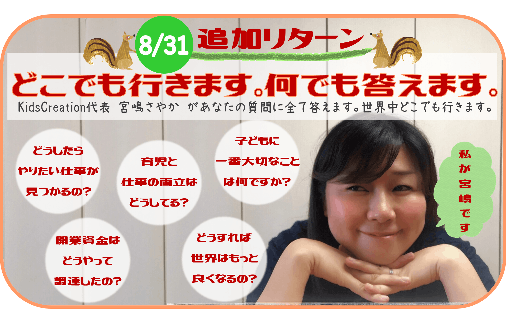 Kids Creation 代表の私、宮嶋さやかがあなたに会いに行きます。