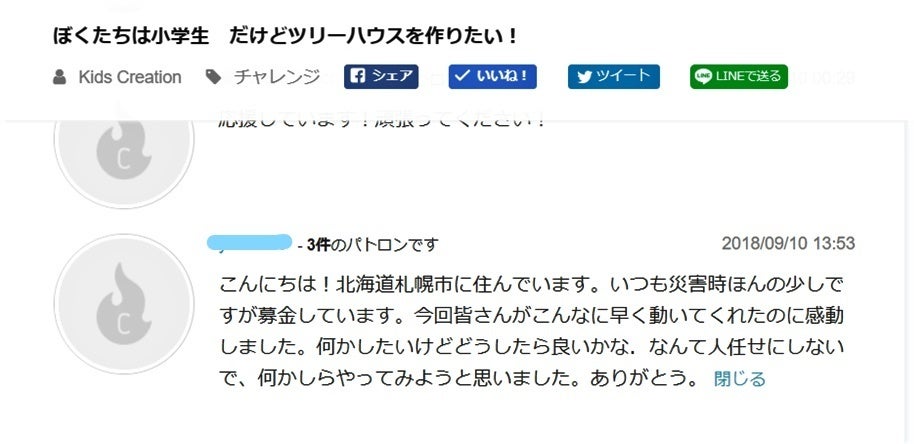 今日9/10、札幌にお住まいの方からご支援をいただきました。