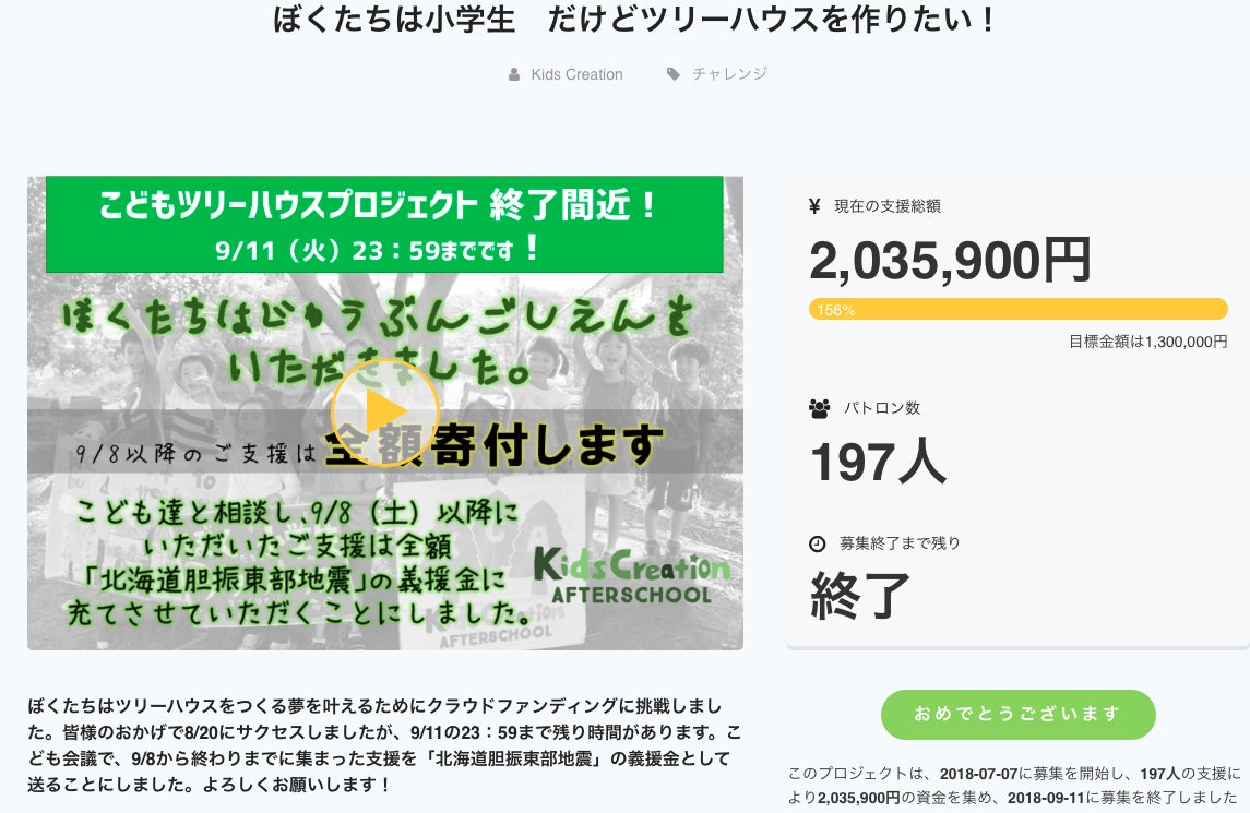 最終的に、支援者数197名 総額2,035,900円ものご支援を頂くことが出来ました。