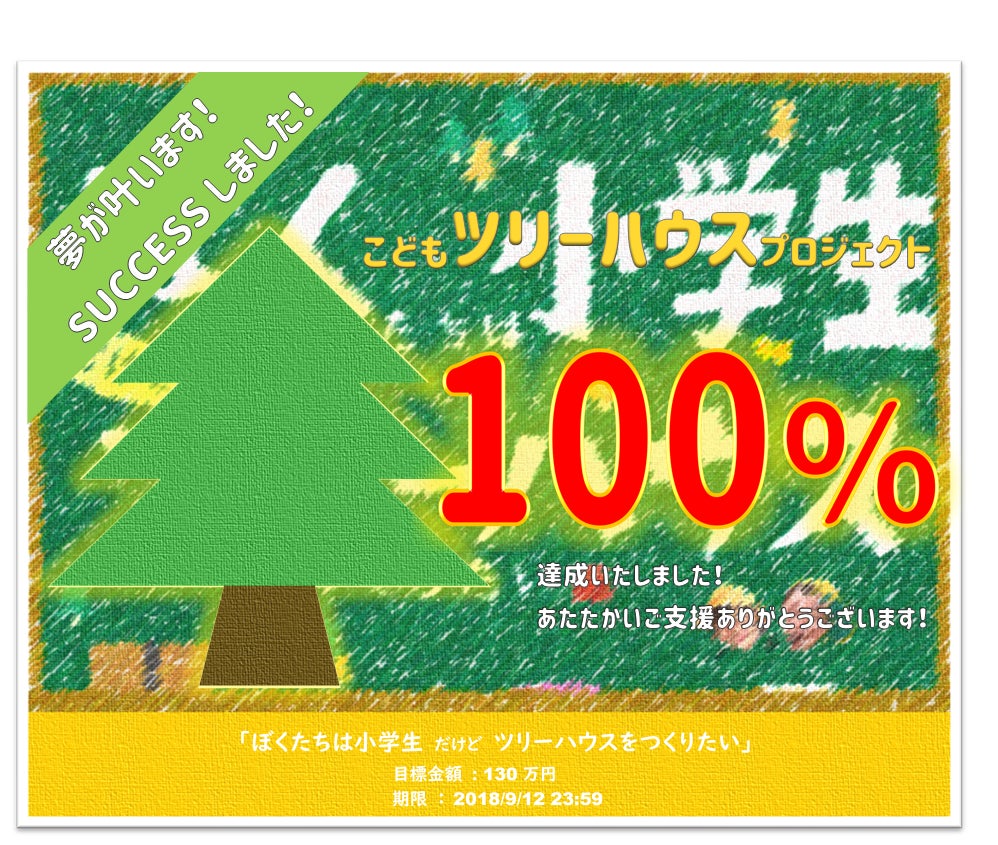 本日は、茨城新聞社の方が取材にお越しくださいました! たくさん経験を重ねた子どもたちは、インタビューにも積極的に発言していました。 100%に到達した今の心境や、支援したくださった方々への気持ちなど 感じていることを素直に伝えていました。 詳しくは記事を楽しみにお待ちくださいね! 一緒に写る感謝を表した「ハートのツリー」もどんどん大きくなっています。 プロジェクトは100%に到達しましたが、子どもたちのチャレンジはまだまだ続きます! 子どもたちは今、自分たちの思い描く理想のツリーハウスをつくるために 次なる目標を話し合っています。 ツリーハウスに照明を取り付けたい! お菓子パーティーをするには机があったらいいね! 看板をつくりたい! ハンモックがあったらいいな! それらを「ネクストゴール」として近日中に皆様にお知らせいたします! 引き続きご支援のほどよろしくお願いいたします。