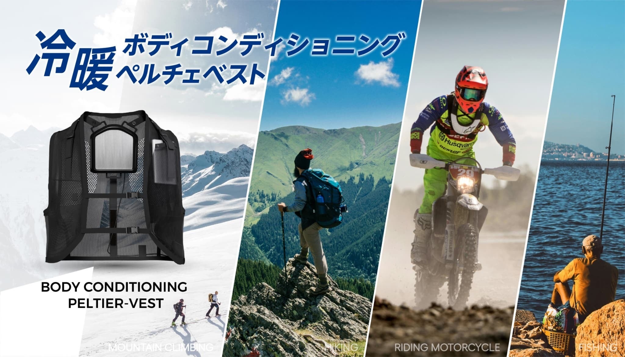 付属のモバイルバッテリーは冷却モードで最大4時間稼働し、市販のバッテリーとも互換性があります。オールシーズンで使えるこのベストで、暑い夏も寒い冬も快適に過ごす事が出来ます。