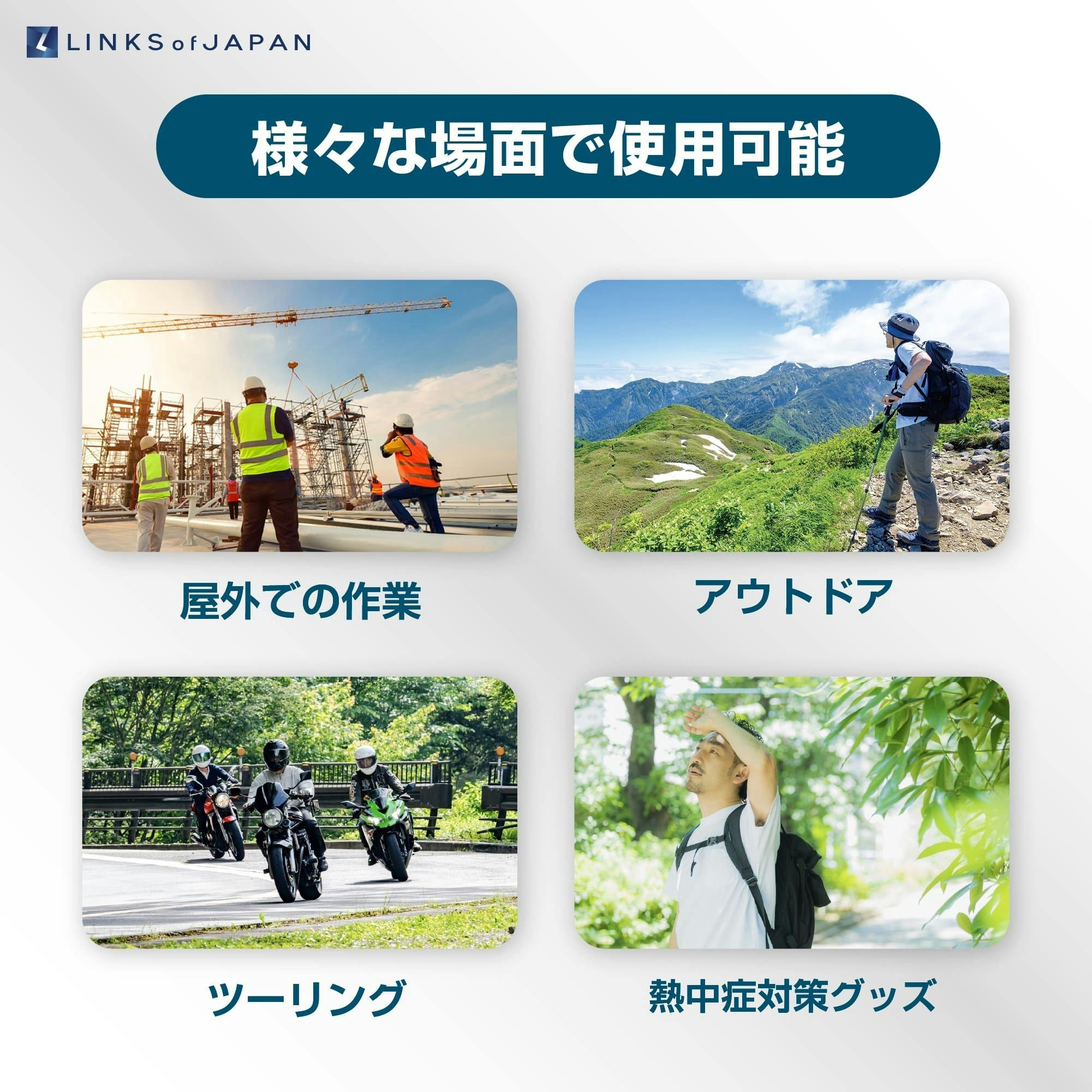 付属のモバイルバッテリーは冷却モードで最大4時間稼働し、市販のバッテリーとも互換性があります。オールシーズンで使えるこのベストで、暑い夏も寒い冬も快適に過ごす事が出来ます。