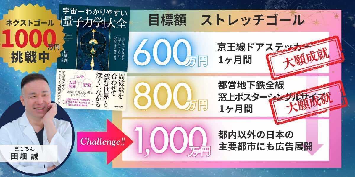 2024/09/21 18:48こんにちはまこちんです。つ、つ、ついにまこちんの本『宇宙一わかりやすい「量子力学」大全』9月20日に発売日を迎えましたっ!これまで本当にたくさんの人たちのお力を借りてここまで来ました。ありがとうございます!そしてっ!クラウドファンディングもおかげさまで600万円を突破しました。もう感謝だらけです。ただまだまだここで終わる氣はまったくありません。ただいまネクストゴールに向けて爆進中です。このときのために新しいリターンもご用意しましたので、ぜひぜひまた覗いてみてくださいねっ。それではネクストゴールに向かって、みなさま引き続きよろしくお願いいたします! もっと見る感謝!目標金額達成しましたー!!
