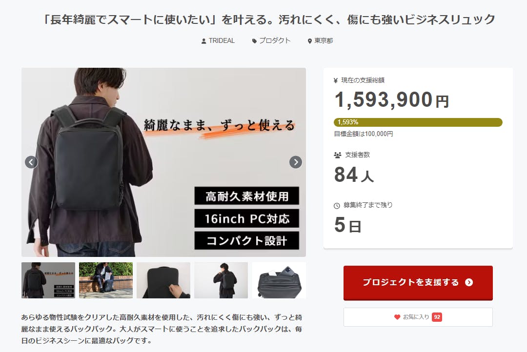 TOUGH SLIM BACKPACKのmachi-yaでのプロジェクトも、ラスト5日になりました!