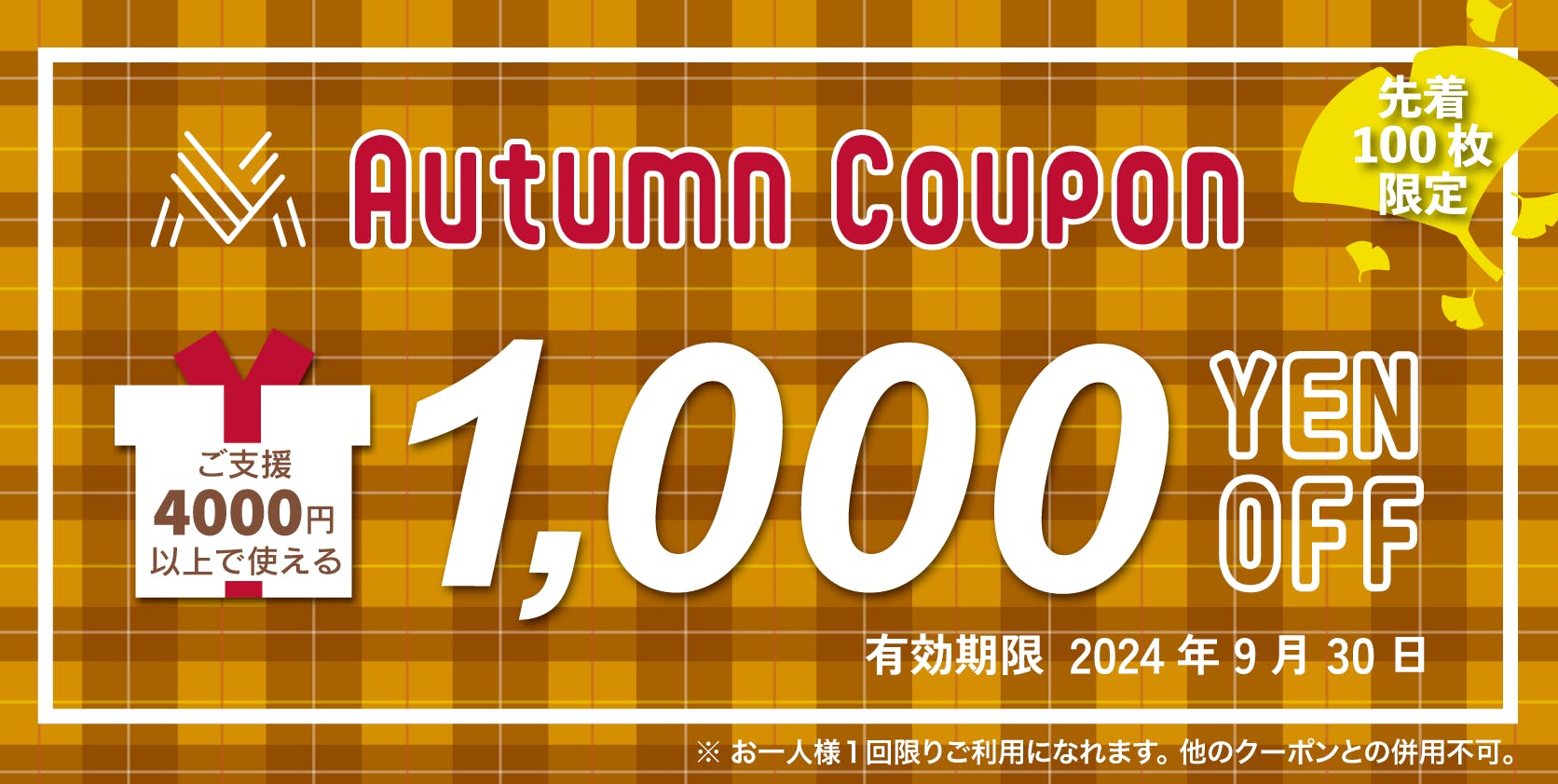クーポン金額:1000円OFF(支援金額4,000円以上)