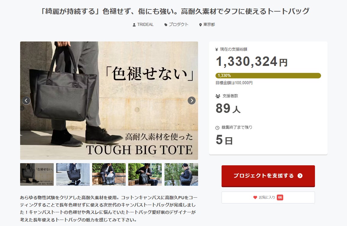 TOUGH BIG TOTEのプロジェクトも、ラスト5日になりました!