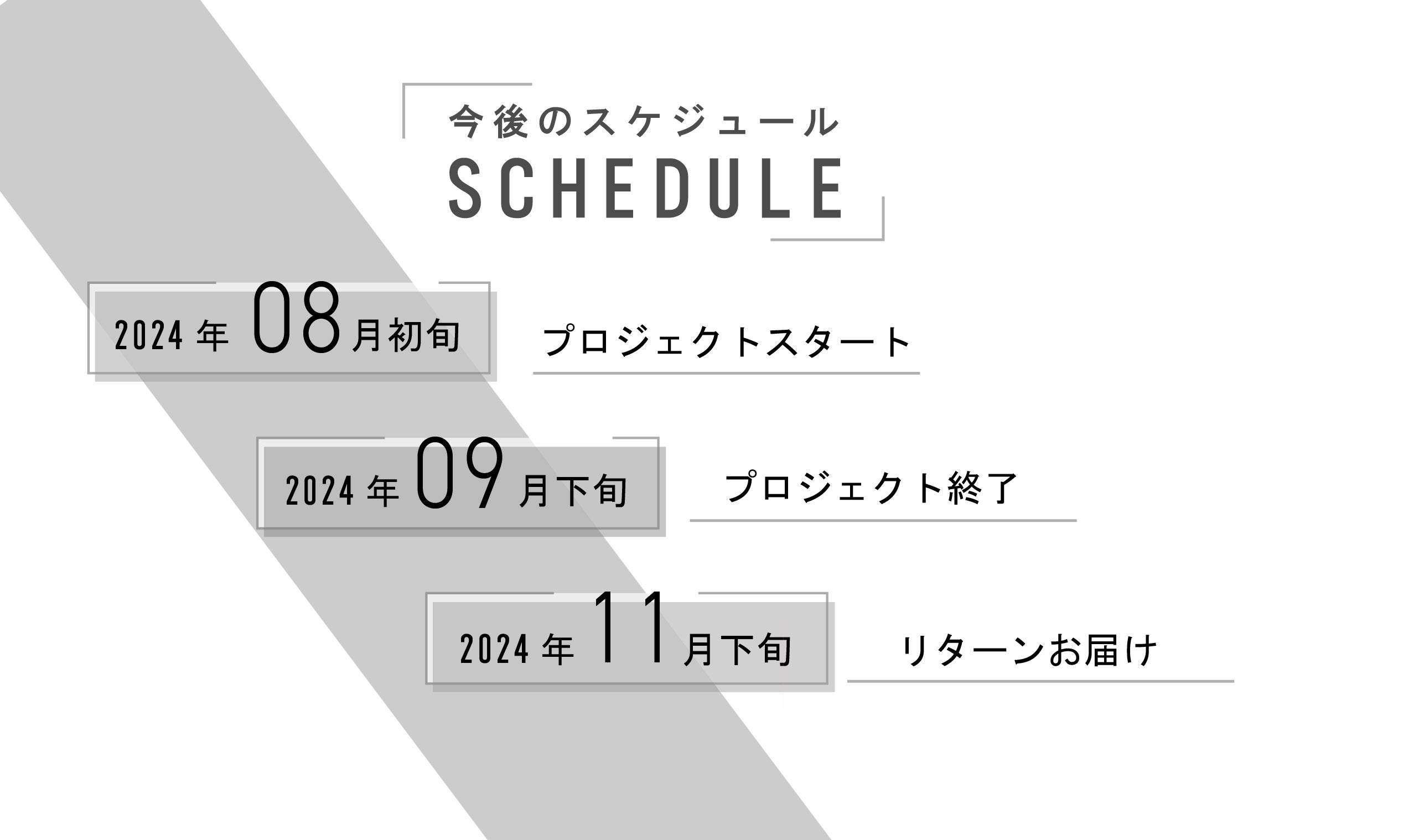 ●引渡し時期: 各リターン詳細に記載の発送予定月を引き渡し時期とします。但し、開発・生産状況によって遅れが生じる場合がありますのでその際は当プロジェクトページ内の「活動報告」または購入者へのメール等で連絡します。