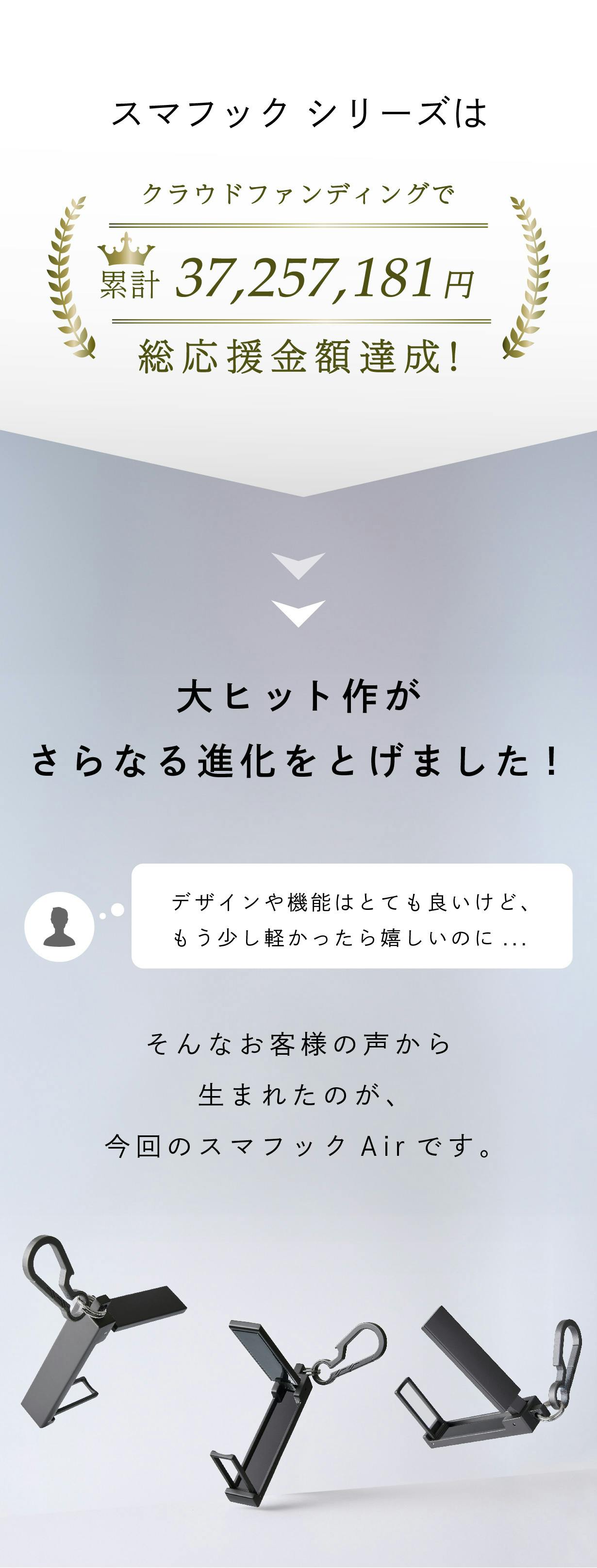 2024/09/28 09:25こんにちは。HORIZON ARROWです。この度は、超軽量【超々ジュラルミン素材】5Wayバッグハンガー「スマフックAir」に多くのご支援をいただき、心より感謝申し上げます。クラウドファンディングも残すところあと2日となりましたが、これまでご支援くださった皆様には、改めて深く御礼を申し上げます。また、この度「スマフックAir」を取り上げていただきましたWebメディアの皆様にも、心から感謝いたします。レビュー記事を掲載いただきました編集部の皆様や、著者の皆様、貴重な体験記事をありがとうございました。「スマフックAir」の購入を検討されている方や、すでにご購入いただいた方にとっても、非常に参考になる記事となっておりますので、ぜひご覧ください。また、ご友人や知人の方にもシェアしていただけますと幸いです。最後の2日間も、引き続き温かいご支援とご声援を賜りますよう、何卒よろしくお願い申し上げます。記事はこちらからご覧いただけます:【Lifehacker】https://x.gd/mw8knhttps://x.gd/zRxcMhttps://x.gd/9pGeL【GIZMODO JAPAN】https://x.gd/jeciXhttps://x.gd/4OMsK【ROOMIE】https://x.gd/8QFBAhttps://x.gd/LH3dr もっと見る【御礼】machi-yaで応援してくれてる皆様へ\ 目標金額達成 !ありがとうございました/