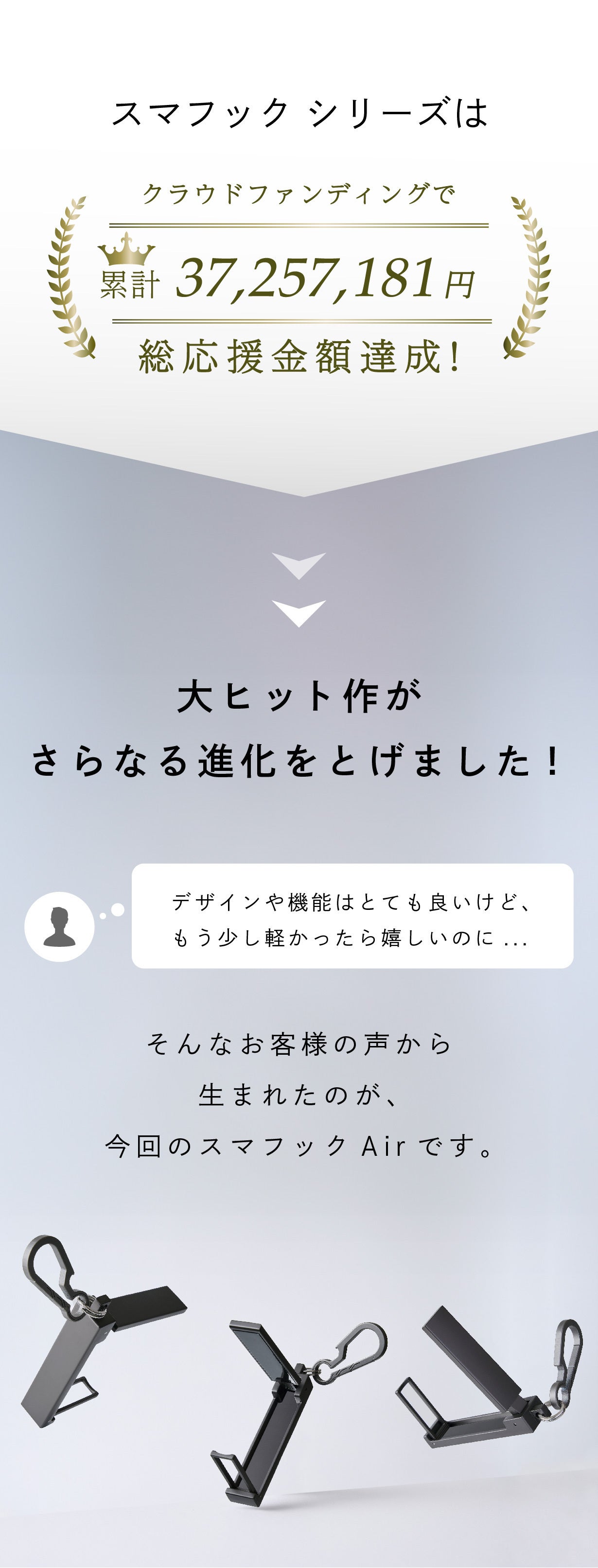2024/09/28 09:25こんにちは。HORIZON ARROWです。この度は、超軽量【超々ジュラルミン素材】5Wayバッグハンガー「スマフックAir」に多くのご支援をいただき、心より感謝申し上げます。クラウドファンディングも残すところあと2日となりましたが、これまでご支援くださった皆様には、改めて深く御礼を申し上げます。また、この度「スマフックAir」を取り上げていただきましたWebメディアの皆様にも、心から感謝いたします。レビュー記事を掲載いただきました編集部の皆様や、著者の皆様、貴重な体験記事をありがとうございました。「スマフックAir」の購入を検討されている方や、すでにご購入いただいた方にとっても、非常に参考になる記事となっておりますので、ぜひご覧ください。また、ご友人や知人の方にもシェアしていただけますと幸いです。最後の2日間も、引き続き温かいご支援とご声援を賜りますよう、何卒よろしくお願い申し上げます。記事はこちらからご覧いただけます:【Lifehacker】https://x.gd/mw8knhttps://x.gd/zRxcMhttps://x.gd/9pGeL【GIZMODO JAPAN】https://x.gd/jeciXhttps://x.gd/4OMsK【ROOMIE】https://x.gd/8QFBAhttps://x.gd/LH3dr もっと見る【御礼】machi-yaで応援してくれてる皆様へ\ 目標金額達成 !ありがとうございました/