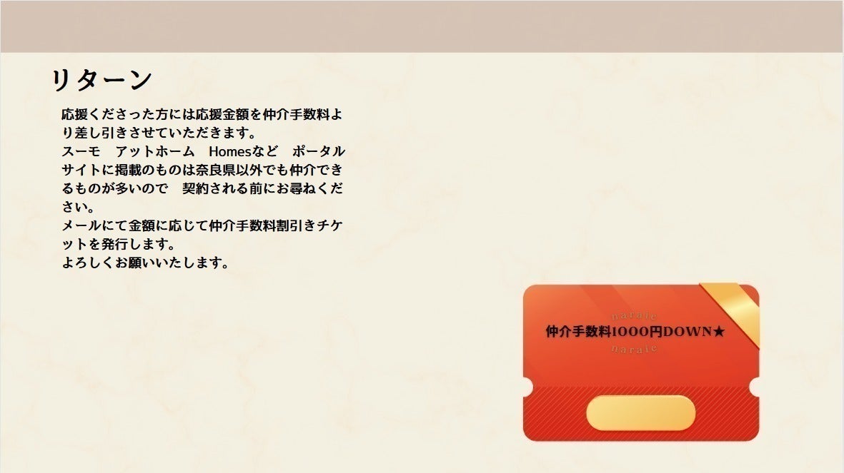 支援くださった方には支援金額を仲介手数料より差し引きさせていただきます。