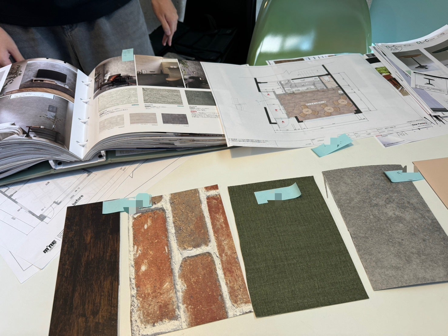 壁の色や材質が決まり、これから細かな確認や変更を経て、いよいよ工事に入っていきます。