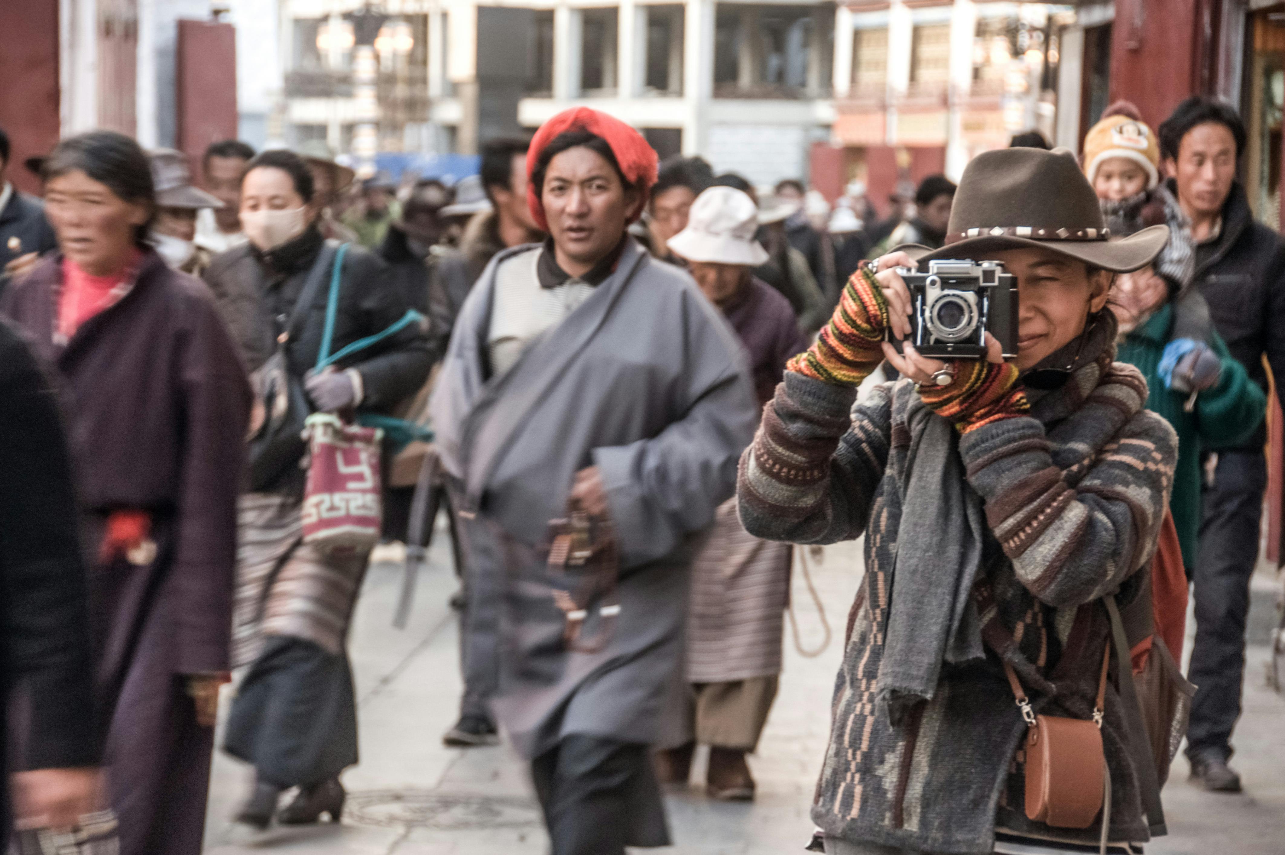 ……およそ2ヵ月間、私は炎天下を東奔西走し、撮影したフィルムは19本に上った。しばらくラサを離れるつもりはなかったので、旅行に来ていた漢人の友人がラサを発つ前に別れを告げにわが家を訪れた際、それらのフィルムをできるだけ早く現像するため、彼女に持っていってくれるよう頼んだ。当時、その場には私たちのほかには誰もおらず、2人の間では電話でフィルムの話をしたこともなかった。ところが、翌日、彼女は空港の安全検査を通過しようとしたところ、フィルムを入れたリュックサックに「果物ナイフ」があるとの指摘を受けた。その「果物ナイフ」は彼女が見たこともないものだったが、警察は有無を言わせずにリュックを持ち去り、荷物は彼女の見えないところで「詳細なチェック」を受けてから、搭乗機の離陸直前に返却された。驚いた彼女はあたふたと搭乗し、飛行機が着陸してからリュックの中身をあらためた。私の19本の富士リバーサル・フィルム120は、コダックの135ネガフィルム10本と富士のネガフィルム5本に変身してしまっていた。