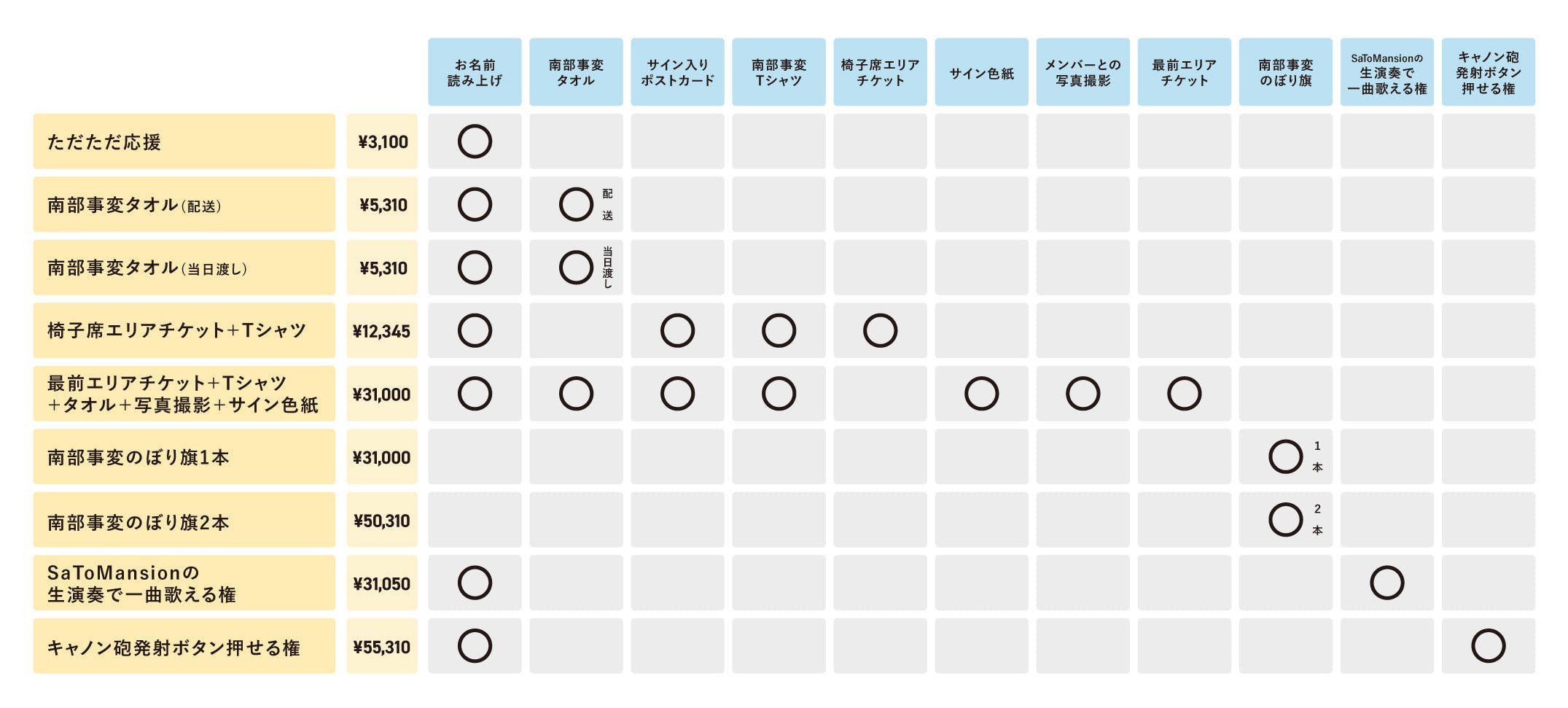 もし100%以上を達成し制作費に余裕ができた場合は、当日のライブ撮影費や物販制作費、今後のSaToMansionの活動費用や次回の南部事変の制作費等に当てさせていただきます。
