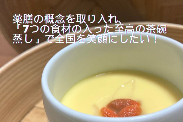 薬膳の概念を取り入れ、フリーズドライ製法で作った「7つの食材の入った 至高の茶碗蒸し」を全国に届け、人々を笑顔にしたい!