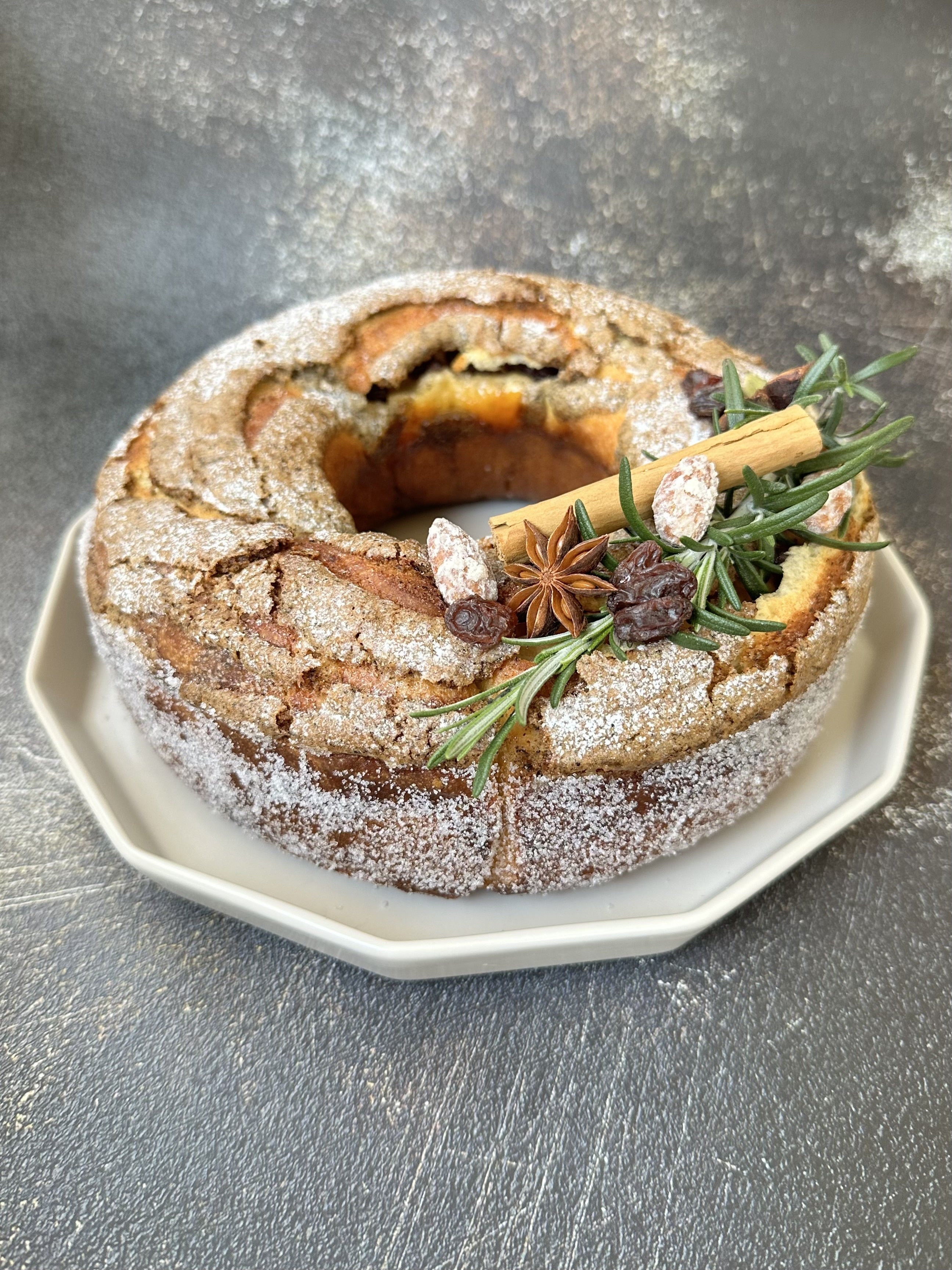 レーズンをスパイスシロップに漬け込み、バターたっぷりのブリオッシュと組み合わせました。