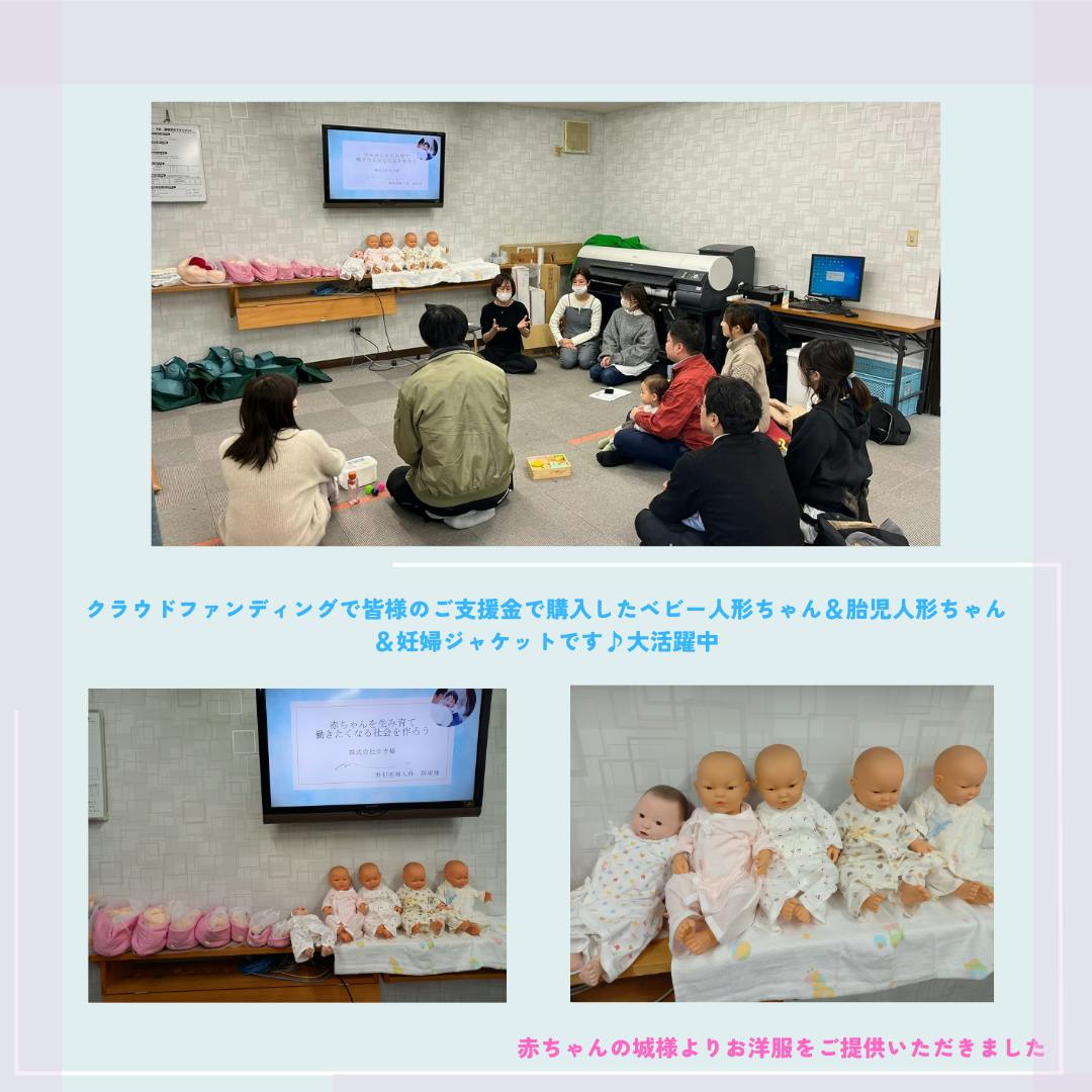 ・集まった支援金で講座の立ち上げと運営初期費用(赤ちゃん人形、妊婦ジャケット)に充てさせていただきます。