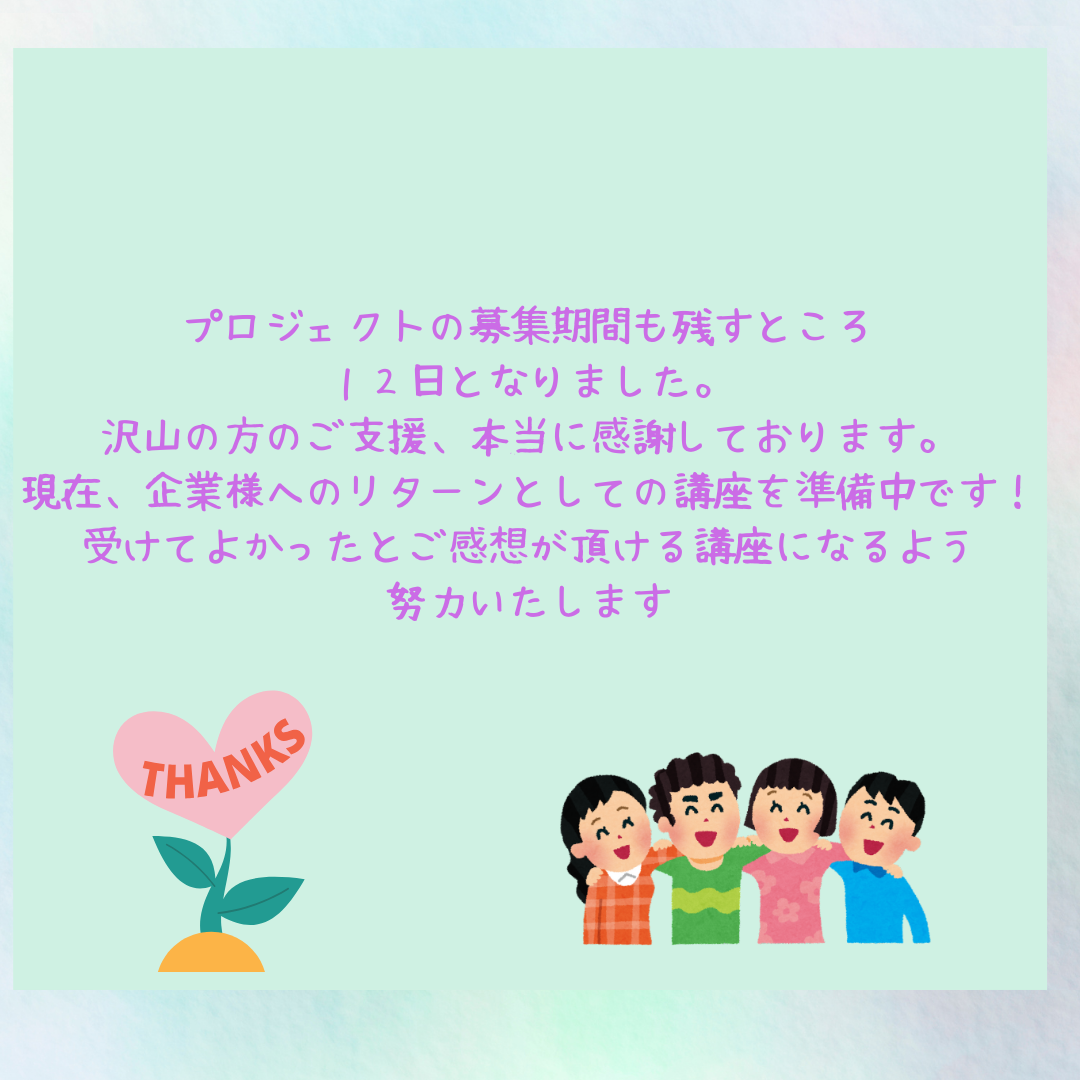 クラウドファンディングに寄付を頂いたiTAN様のリターンとして実現したオンライン講座のご報告♪株式会社iTANは東京にあり、スマホアプリ開発プラットフォーム『iSIN』の提供やDX支援を地域企業を中心に展開するIT企業です。今回支援いただいたことで、東京と滋賀という離れた場所でありながらオンライン講座が実現できたこたに感謝申し上げます。そしてオンライン講座の講師は、医療法人真心会の南草津野村病院、野村産婦人科に勤務されています皆様お馴染みの水谷ひかり先生でした♪先生は医療現場だけでなく 女性の健康教育にも積極的に取り組まれれ、企業向けの「女性の健康講座」、高校・中学校での性教育、大学での講義など、多方面で活動され日々地域医療と教育の両面で活躍されています。そんな水谷先生からとてもわかりやすい講座を皆さまにお届けでき、皆さまからの好評もいただき大変充実した講座となりました☆今回の参加者数は50名以上♪改めてご支援いただいたⅰTAN様、ご参加いただいた皆様、関係者の皆様ありがとうございました