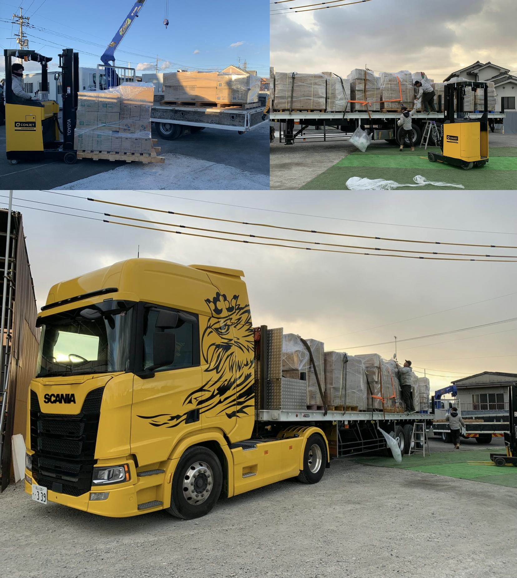 弊社代表の提案により、自社のトレーラーで被災地に支援物資を届けさせていただきました。