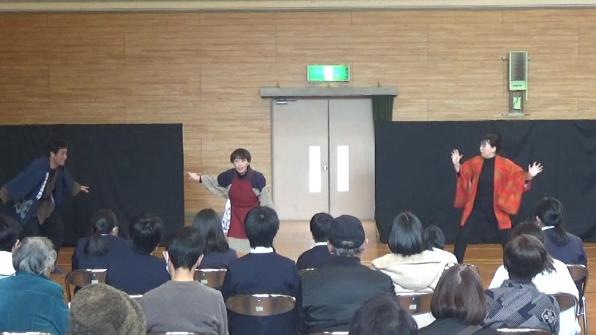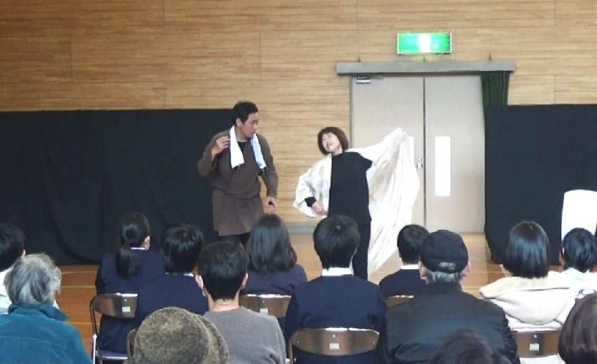 そこで、私たちの指導者でありプロの声楽家である三待美早穂先生に企画・構成・演出をしていただき、今年3月に初めて落語オペラの小学校公演を三次市内の小学校2校で行いました。その際には、歌の素晴らしさをより強く感じて貰うため、三待先生を含む3人の声楽家の方とプロのピアニストにも出演をしていただきました。
