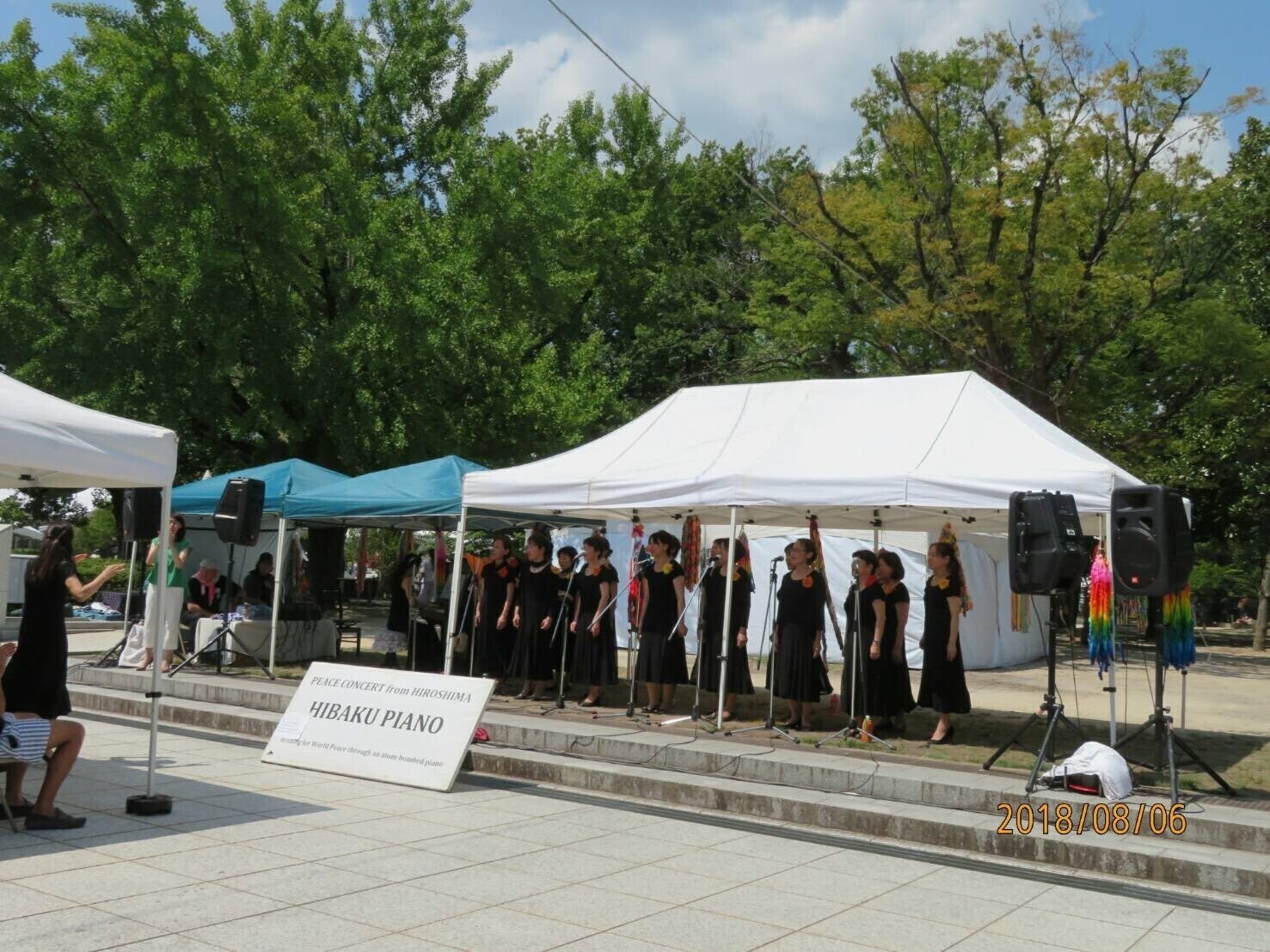 毎年8月6日に原爆資料館前で行われる「被爆ピアノアオギリ平和祈念コンサート」には、2003年より現在まで参加し続けています。全日本おかあさんコーラス中国支部広島大会には2004年〜2019年まで出場し、2012年には東京での全国大会に出場しました。また、2017年〜2019年には島根県益田市で開催された「グラントワカンタート」にも参加しました。そして、今年4月15日〜17日に横浜市で開催された「国際シニア合唱祭 ゴールデンウェーブin横浜」では、横浜みなとみらい大ホールで歌声を披露しました。
