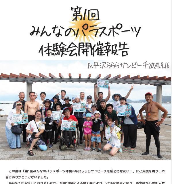 Journal of Clinical Rehabilitation5月号というリハビリの雑誌に、「第1回みんなのパラスポーツ体験in平沢らららサンビーチ開催への軌跡」を5ページ(オールカラー)にまとめたものが掲載予定です。4月下旬に発売予定です。https://www.ishiyaku.co.jp/magazines/cr/forenotice.aspx良かったら、ご一読ください。皆様のご支援があっての開催でした。重ねて御礼申し上げるとともに、次回もご期待ください!