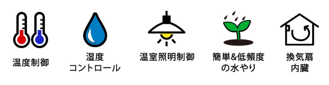 温度制御・湿度コントロール・温室照明制御・簡単&低頻度の水やり・自動換気の環境自動管理により、当社調べで植物の成長率が50%以上向上を確認しました。