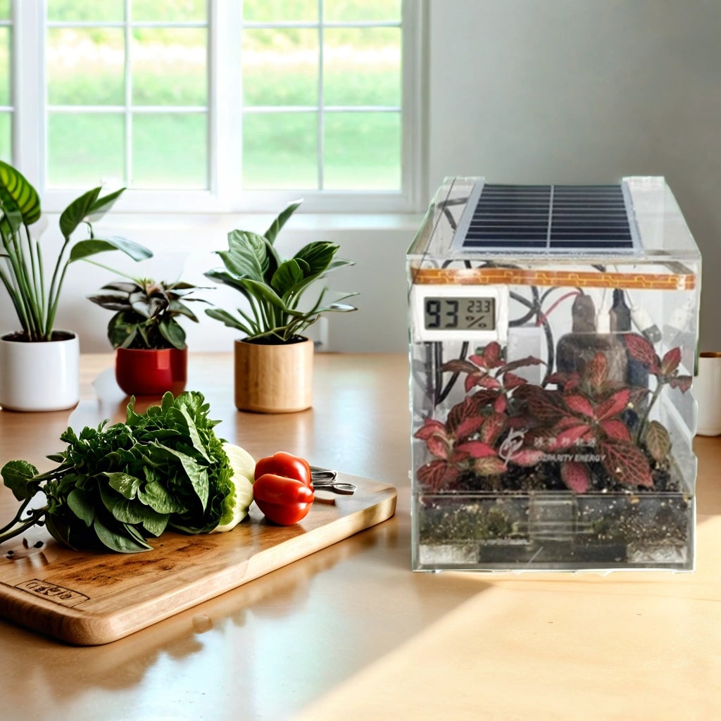 【ソーラーパネルで自動管理!】ソーラーパネルで光を集めて温度・湿度・水やりなどを自動に!ソーラーミニ温室 ”ライト・オブ・ライフ”