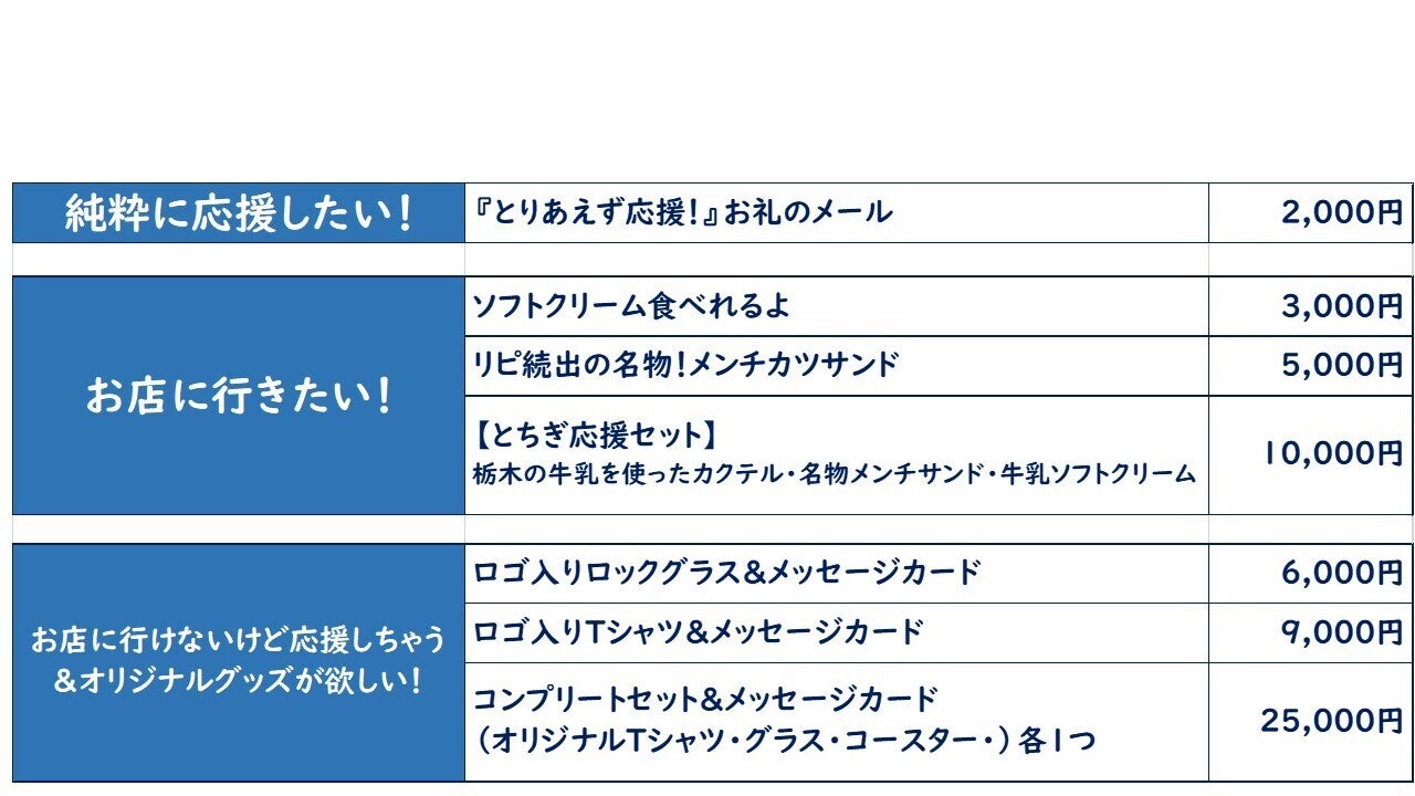 こんにちはm(_ _)m マスター頑張って下さいm(_ _)m 目標達成してぜひ、栃木の美味しい「ソフトクリーム」食べさせて下さい🍦🎵 ソフトクリームは1種類のみの販売なのでしょうか!?例えば、ミックスとか考えていらっしゃるのでしょうか!? コストの面で大変なので1種類ですかね!?
