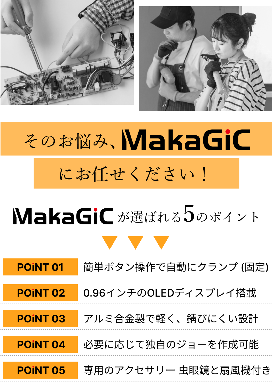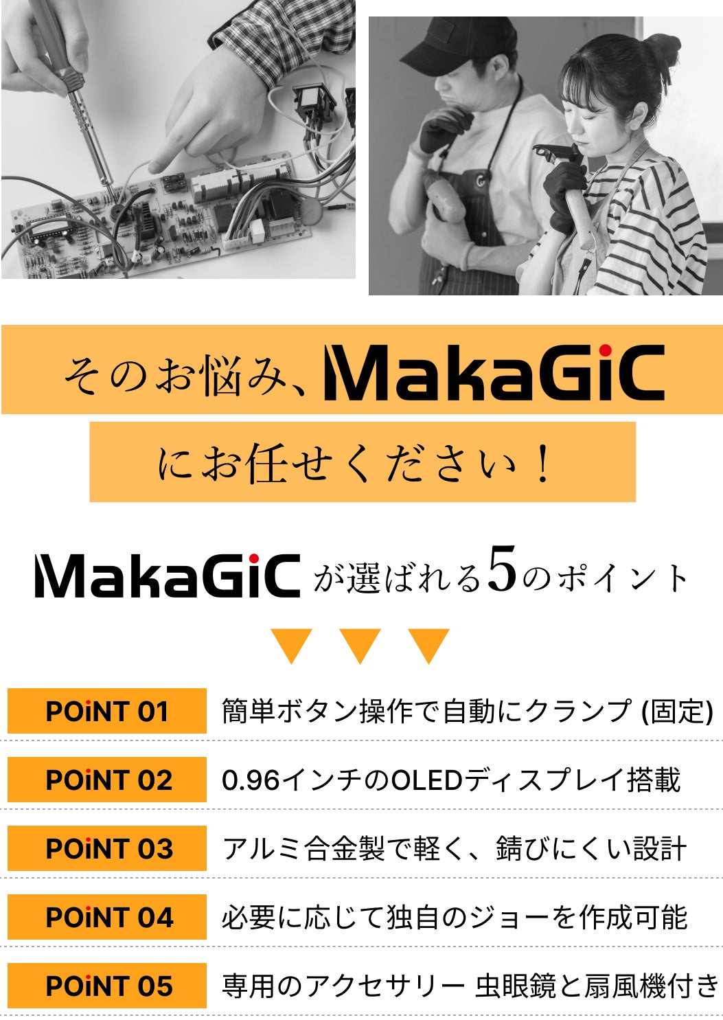「MakaGic 」は、「メーカー」の実用性と「魔法の」夢が見事に融合したものです。私たちは、日常のツールに魔法のエッセンスを吹き込み、作業効率と快適性を高めたいと考えています。スマートなデザインへの情熱に突き動かされて、MakaGic はお客様のニーズを満たすだけでなく、ワークスペースに特別なスタイルをもたらすツールを製作しています。すべての作品は機能性と想像力が融合し、創造性と効率性を刺激するように設計されています。