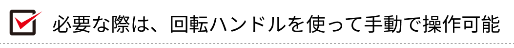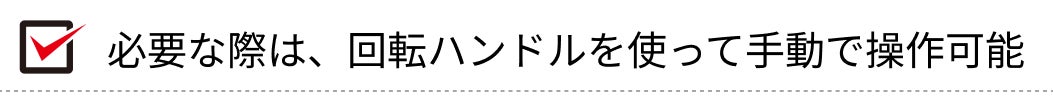 当商品は手動制御の柔軟性を維持しており、必要なときにいつでも回転ハンドルを使って手動で操作できます。