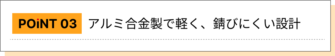 職人技で製造された当社の製品は、高品質アルミニウム合金製の一体型デザインを特徴としています。アルミニウム合金を使用することで軽量化と錆びにくい優れた耐久性を実現しました。