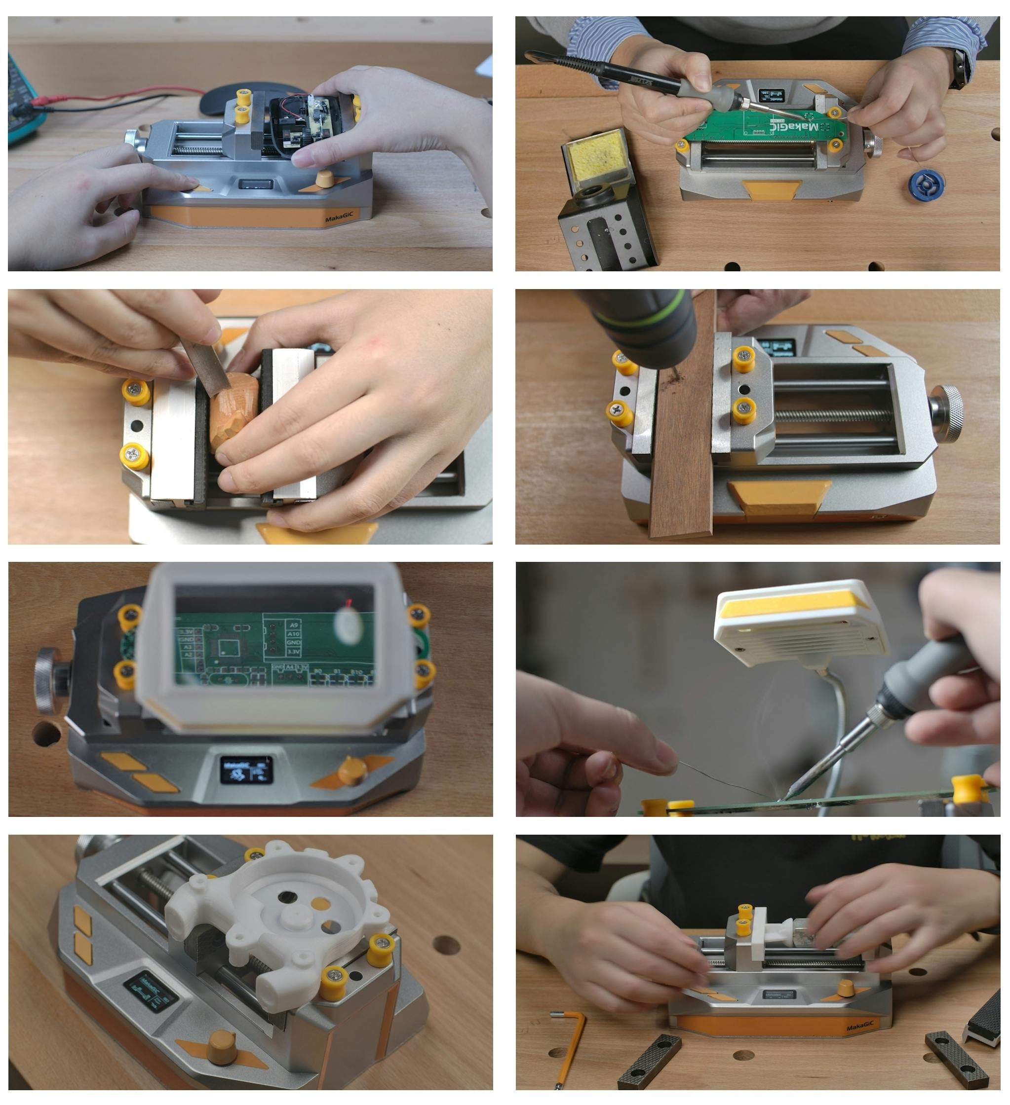 高効率モーターを搭載し、最大クランプ速度19mm/s、クランプ力7kgfの優れた性能を発揮します。PCB のはんだ付けから細かい彫刻まで、作業効率を一貫して高める優れたツールです。