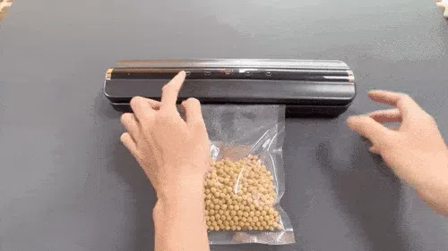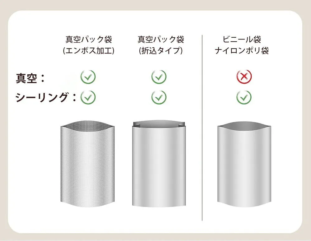 本製品は袋をセットした後、ボタンを1つの簡単操作で自動的に「真空パック」することができます。
