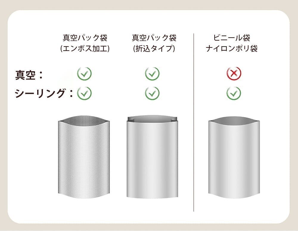 本製品は袋をセットした後、ボタンを1つの簡単操作で自動的に「真空パック」することができます。