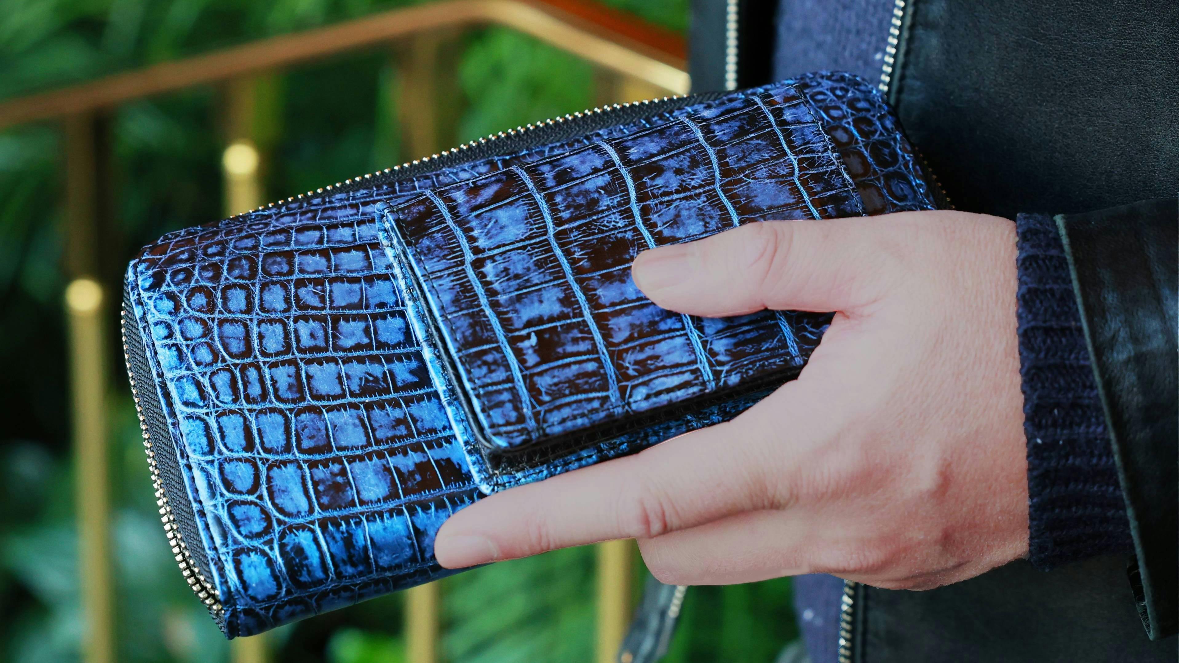 自然から授かった素材、クロコダイルやパイソン、リザード、エレファント、シャーク等の皮革素材を使って財布やバッグなどのレザー製品を製作しています。